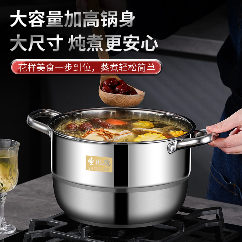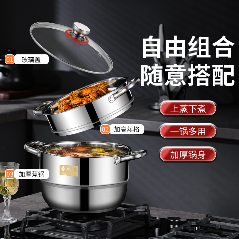 不满意可退货特厚不锈钢家用蒸煮锅多用汤锅蒸馒头电磁炉双层蒸锅