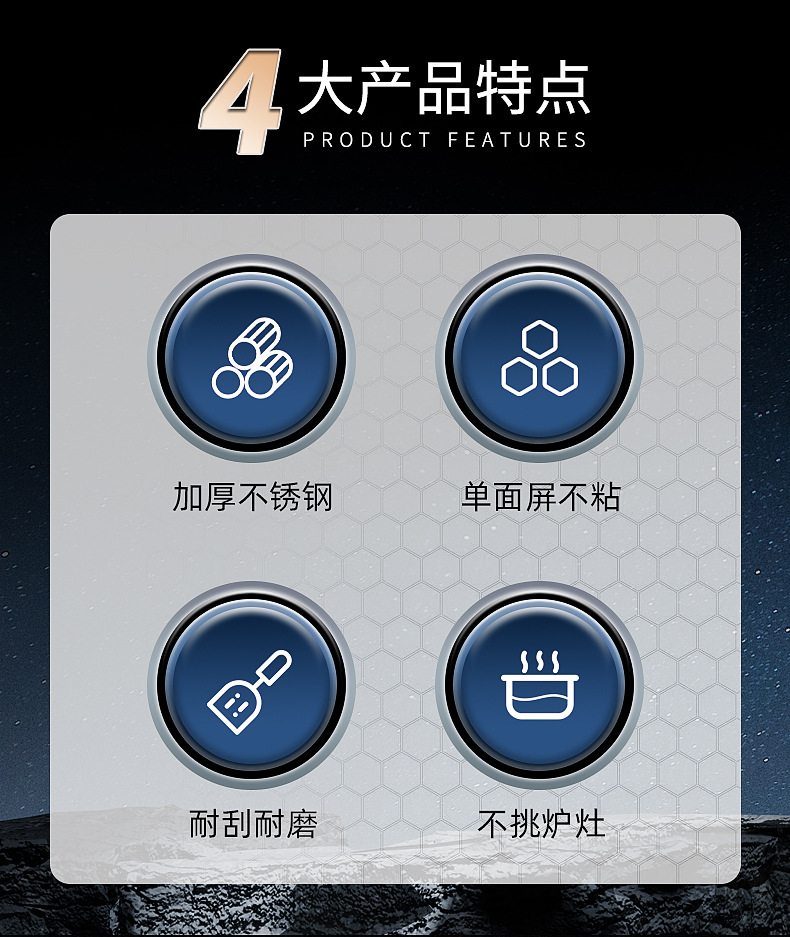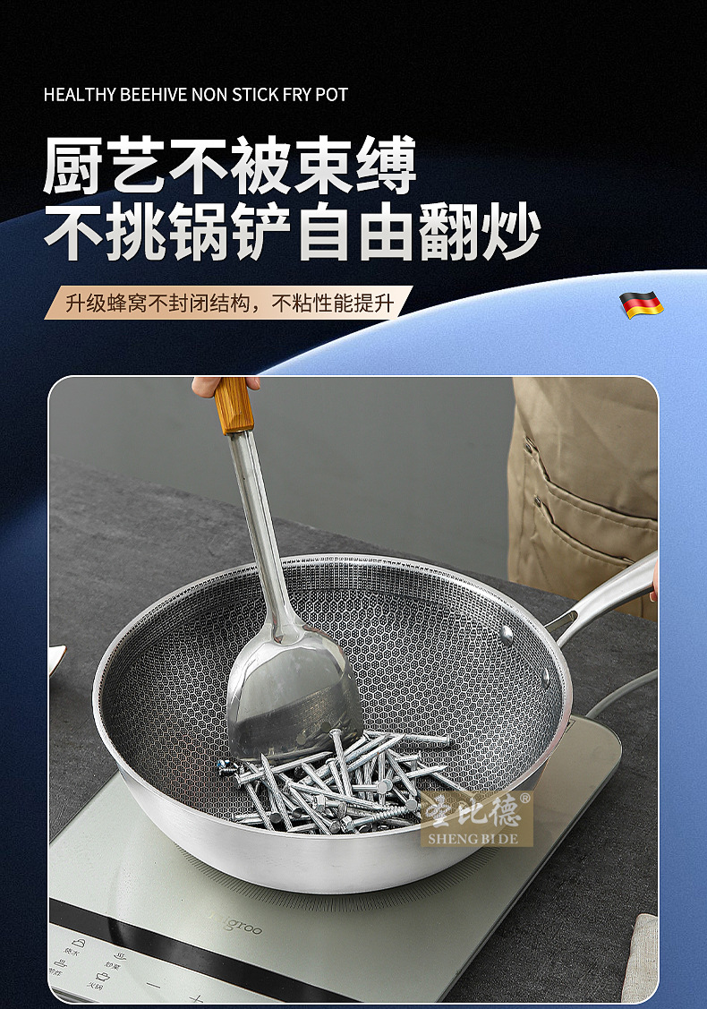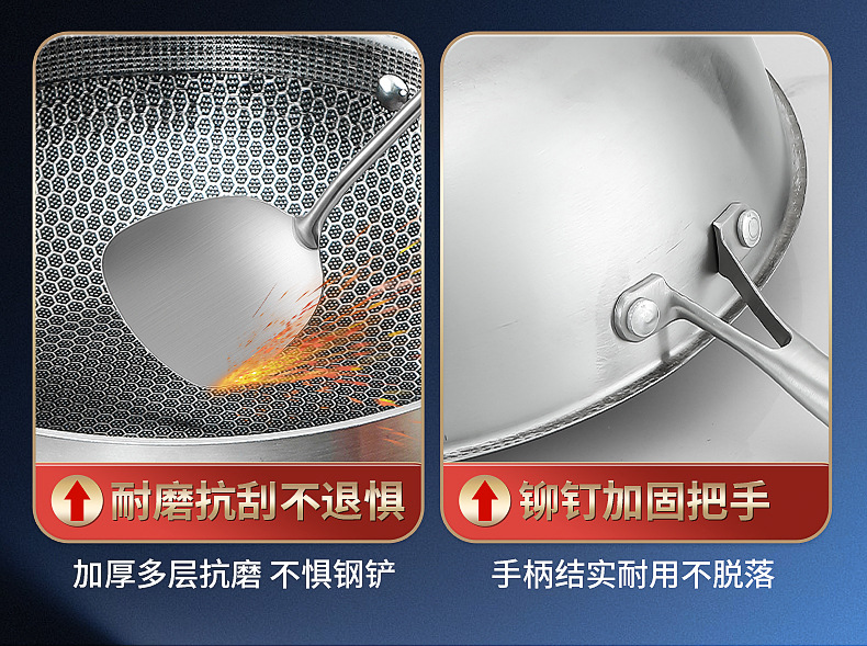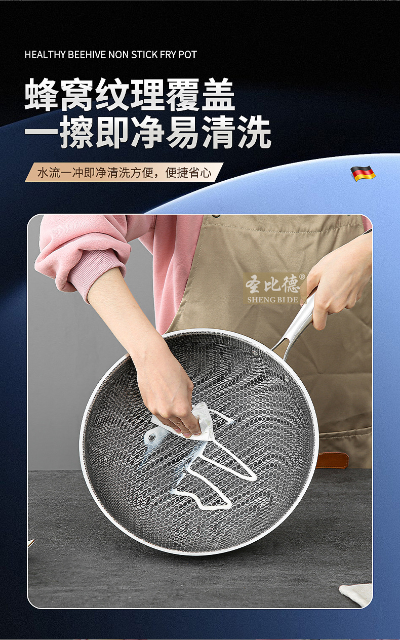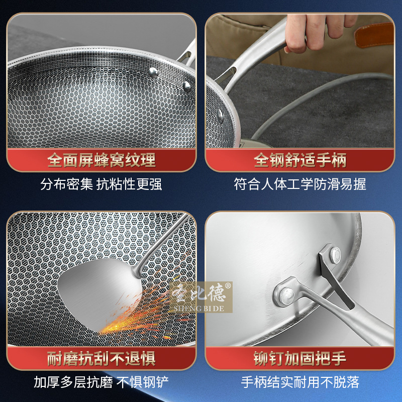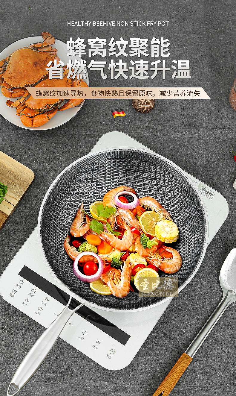 不锈钢炒锅无涂层蜂窝不粘锅炒锅轻油烟炒菜锅家用煤气燃气电磁炉