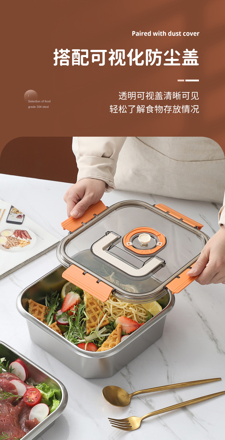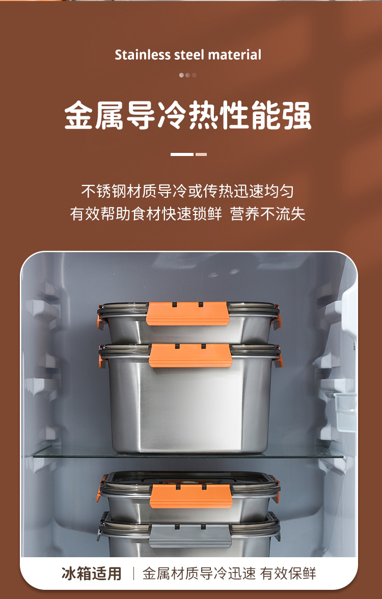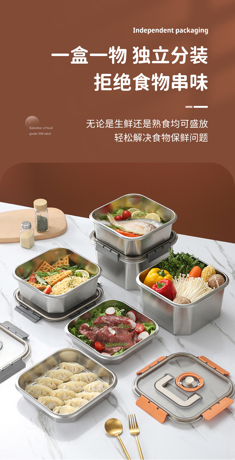 跨境亚马逊爆款方形不锈钢保鲜盒 304不锈钢密封盒冰箱收纳盒批发