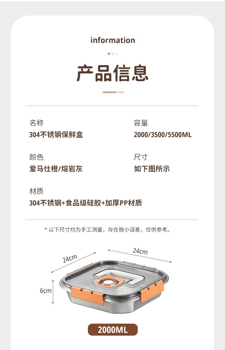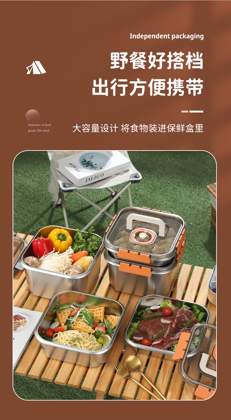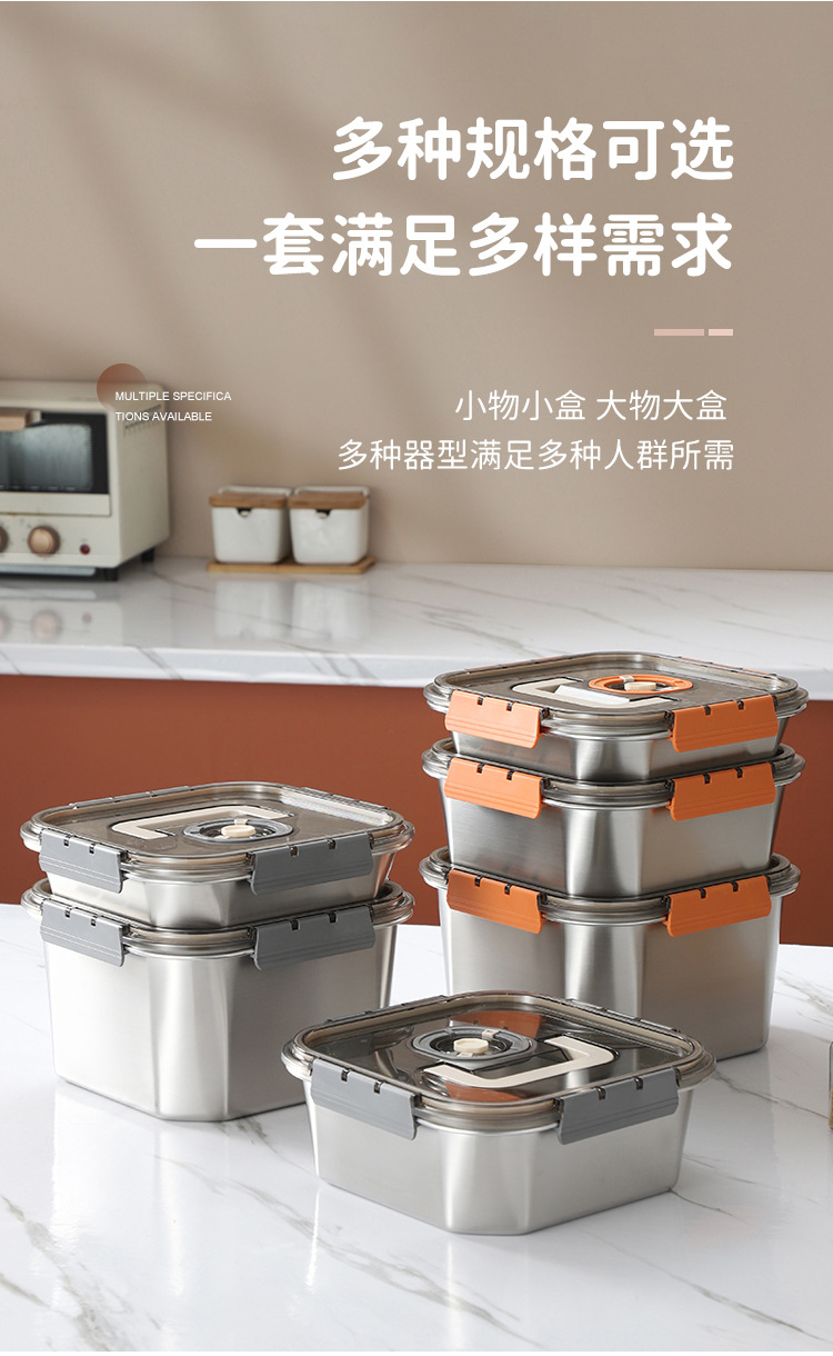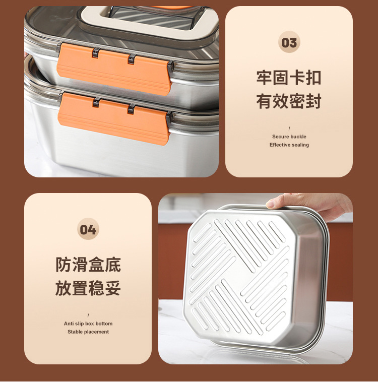 跨境亚马逊爆款方形不锈钢保鲜盒 304不锈钢密封盒冰箱收纳盒批发