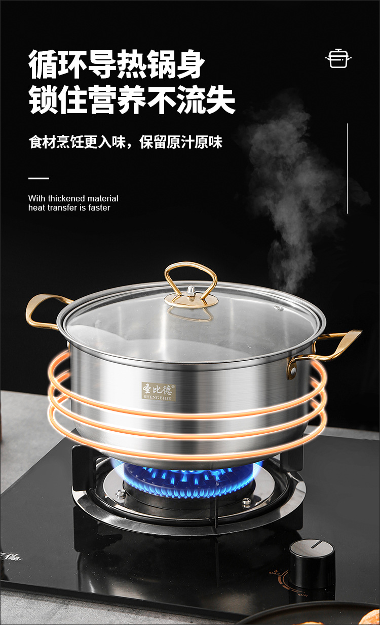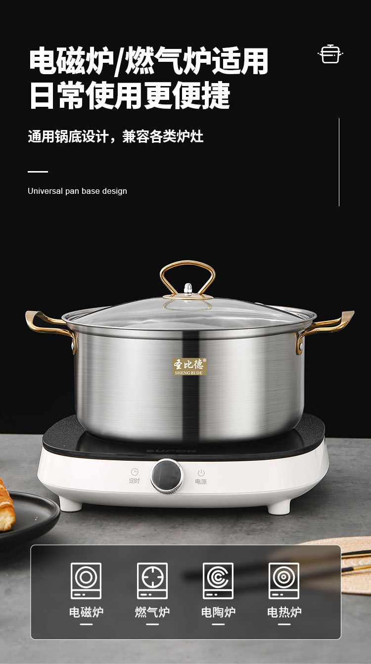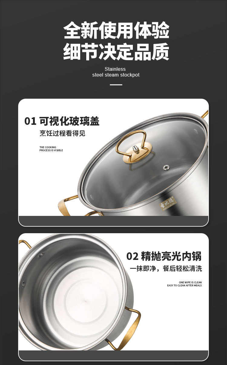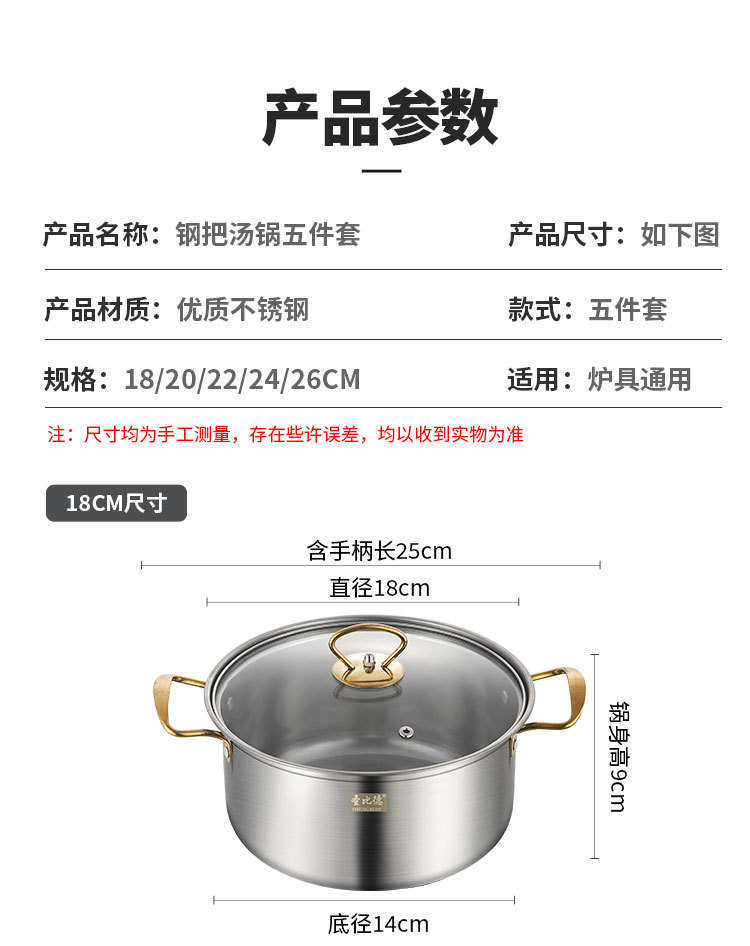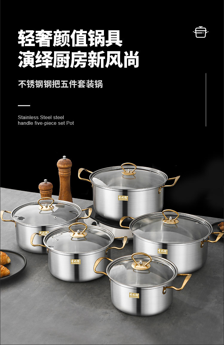 厂家直销不锈钢锅具套装东南亚厨房锅具汤锅套装金色手把烹饪套锅