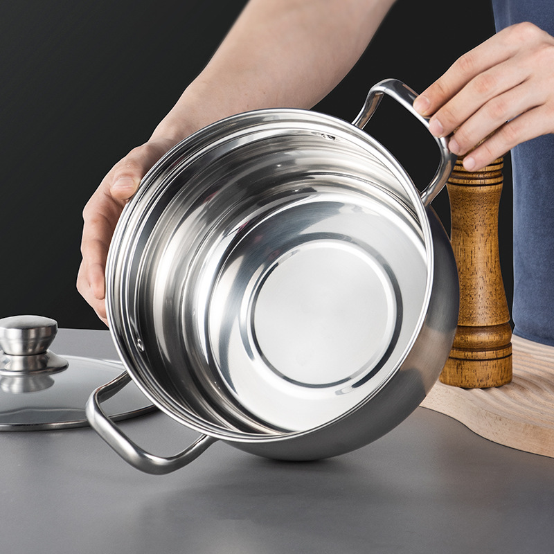 圣比德不锈钢汤锅加厚防溢双耳锅家用炖肉汤锅不锈钢银行礼品批发