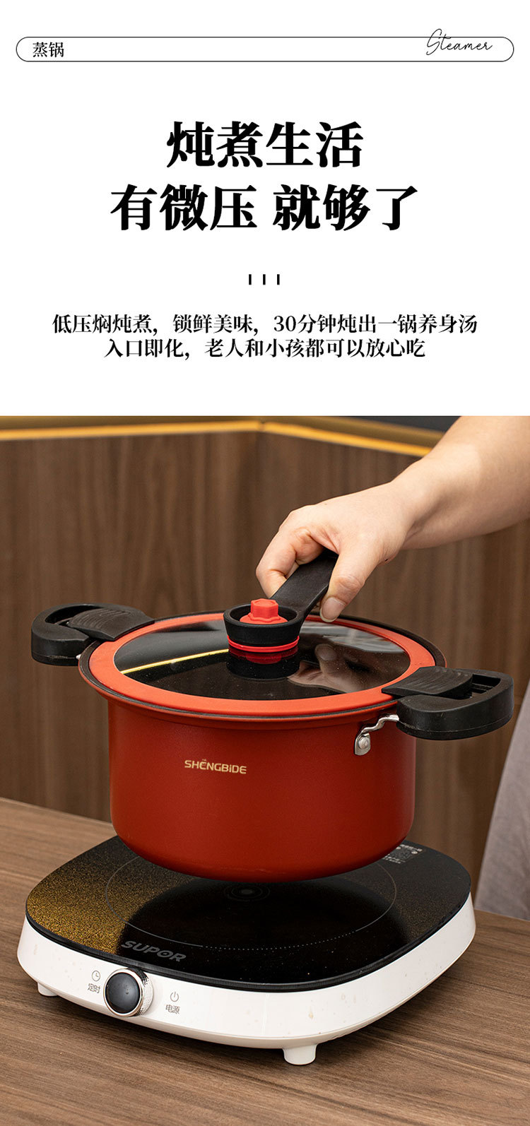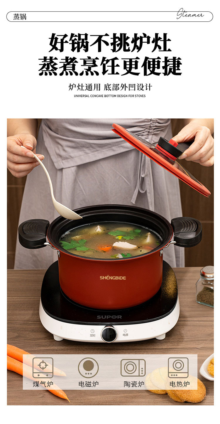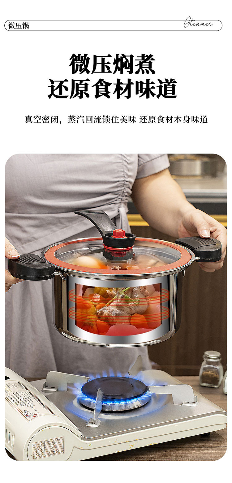 3.5L微压汤锅加厚家用蒸锅煮粥锅煮锅蒸煮燃气电磁炉压力炖煮汤锅