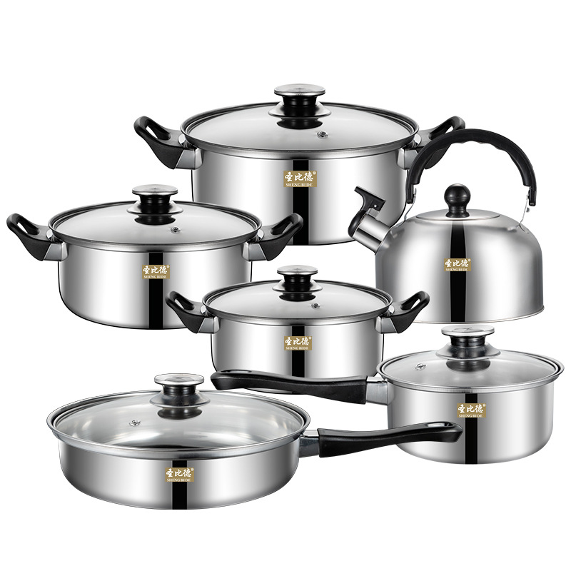 Cookware Sets 不锈钢锅具套装12件套可拆卸手把汤锅水壶套装批发