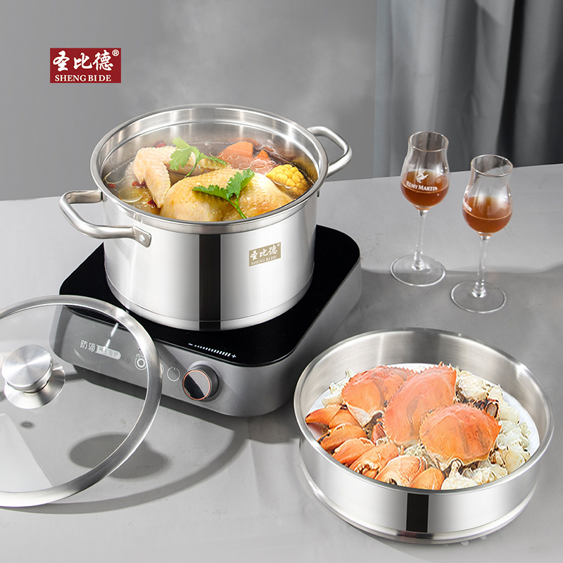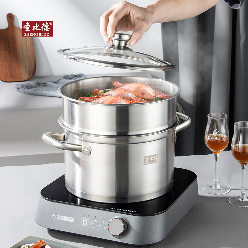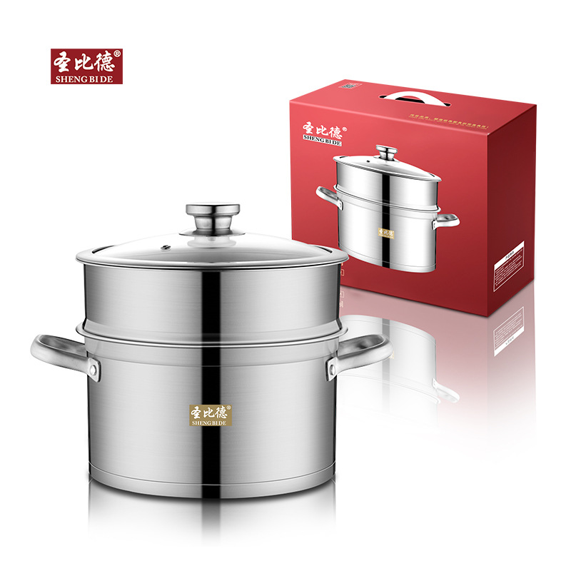 蒸锅304不锈钢双层直角蒸汤锅家用食品级礼品锅具批发笼屉