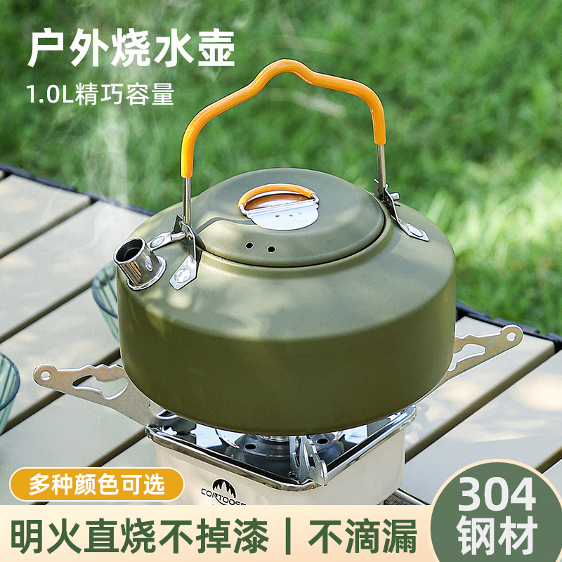 跨境亚马逊户外烧水壶野营露营旅行野外水壶便携泡茶不锈钢户外壶