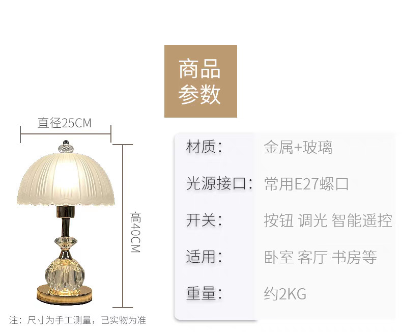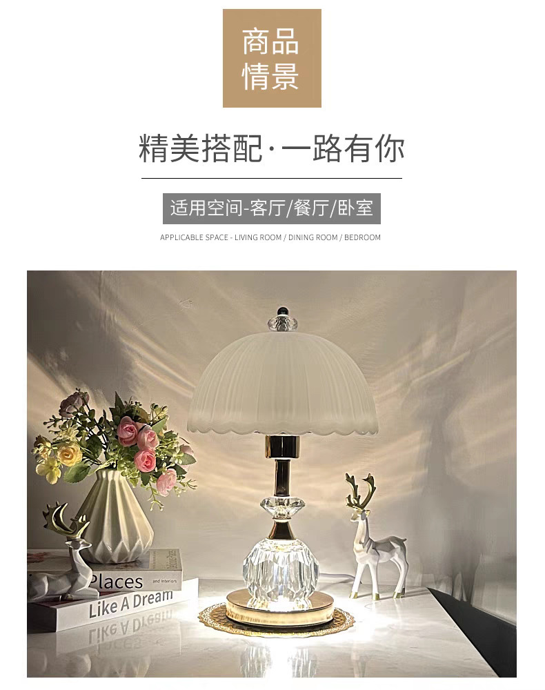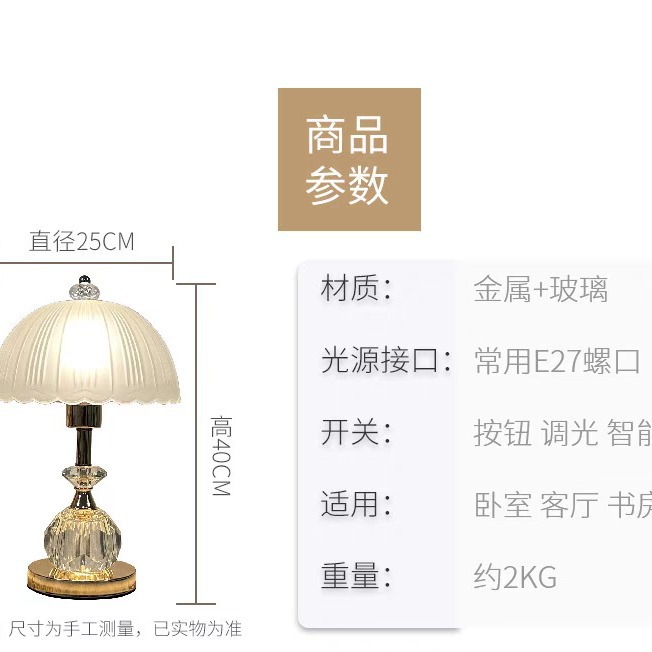 外贸专供欧式水晶台灯卧室轻奢高端新款高级感三色变