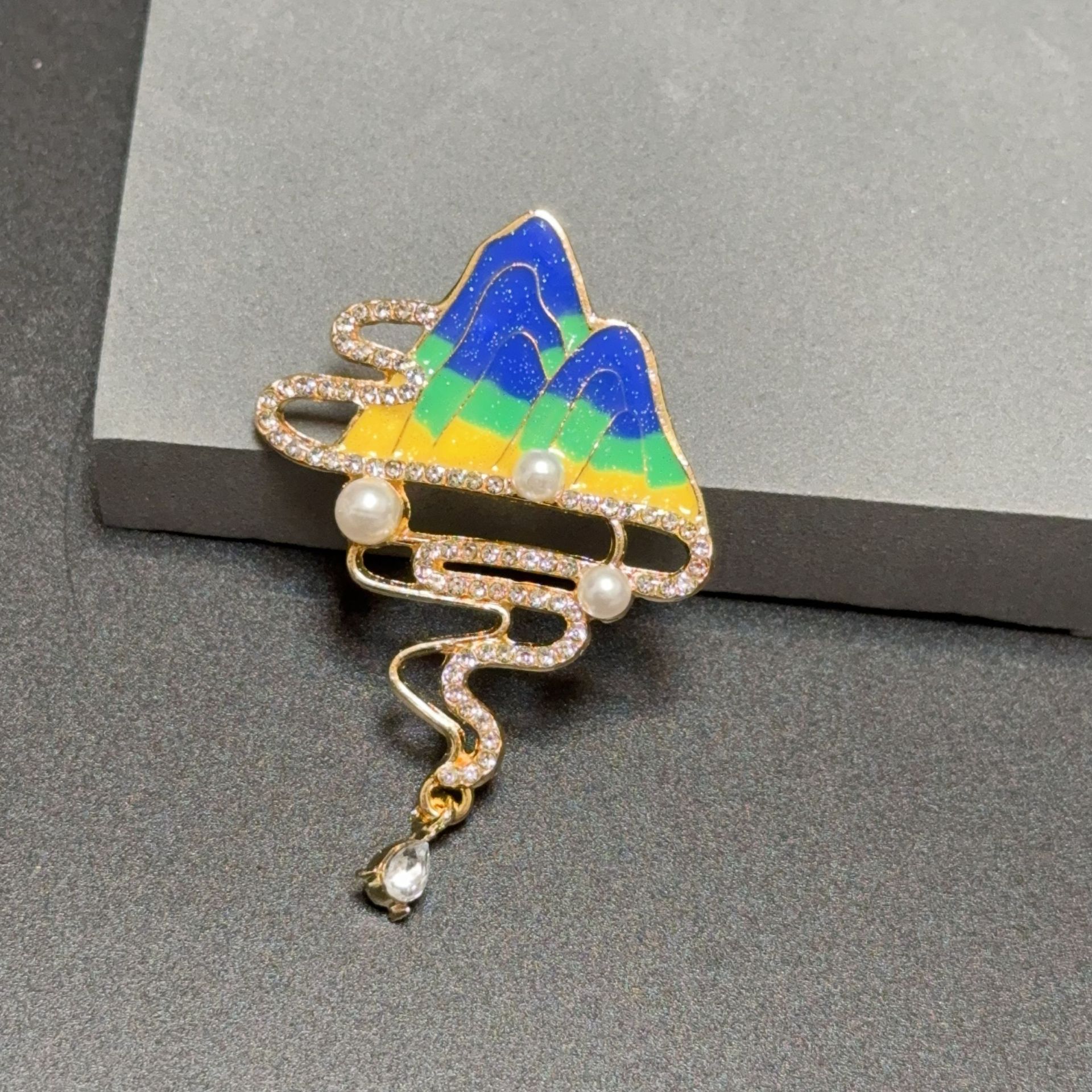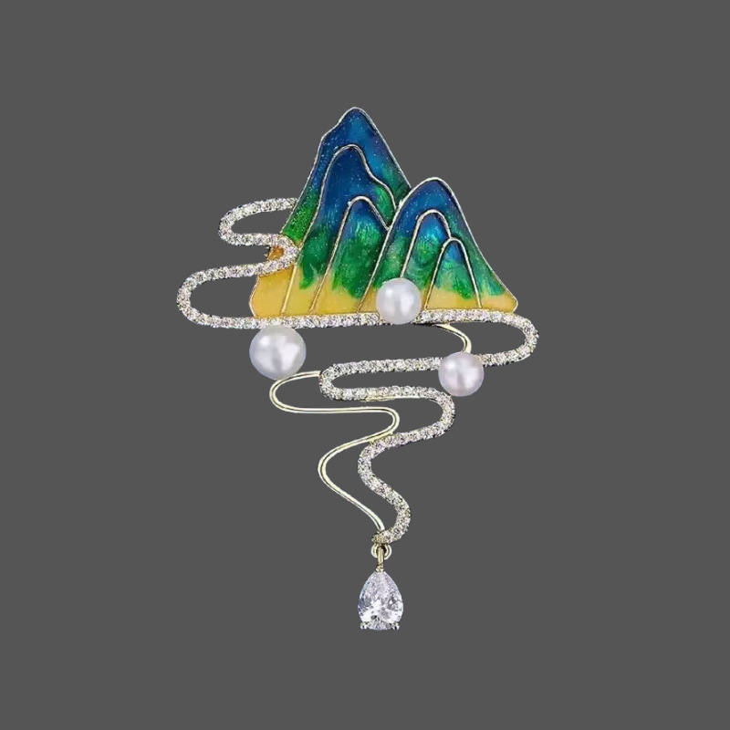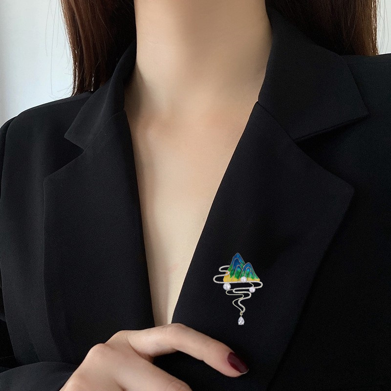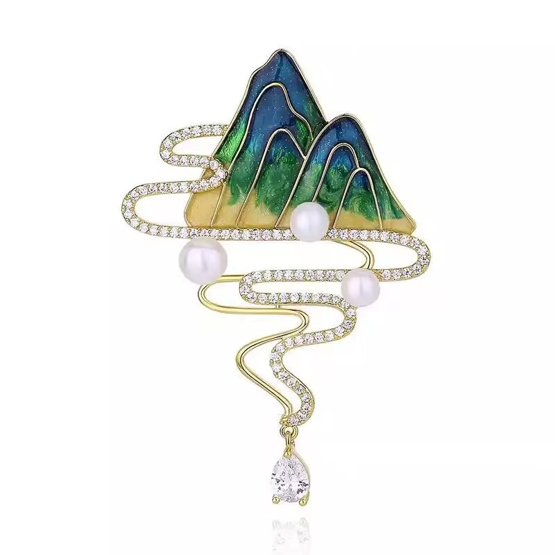 新款千里江山图胸针复古中国风山水古风胸花轻奢小众别针胸针批发