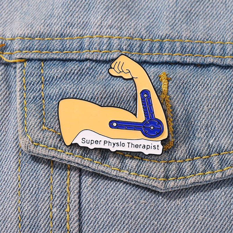 跨境新款创意卡通肌肉手臂图案胸针通勤个性百搭配饰烤漆金属徽章