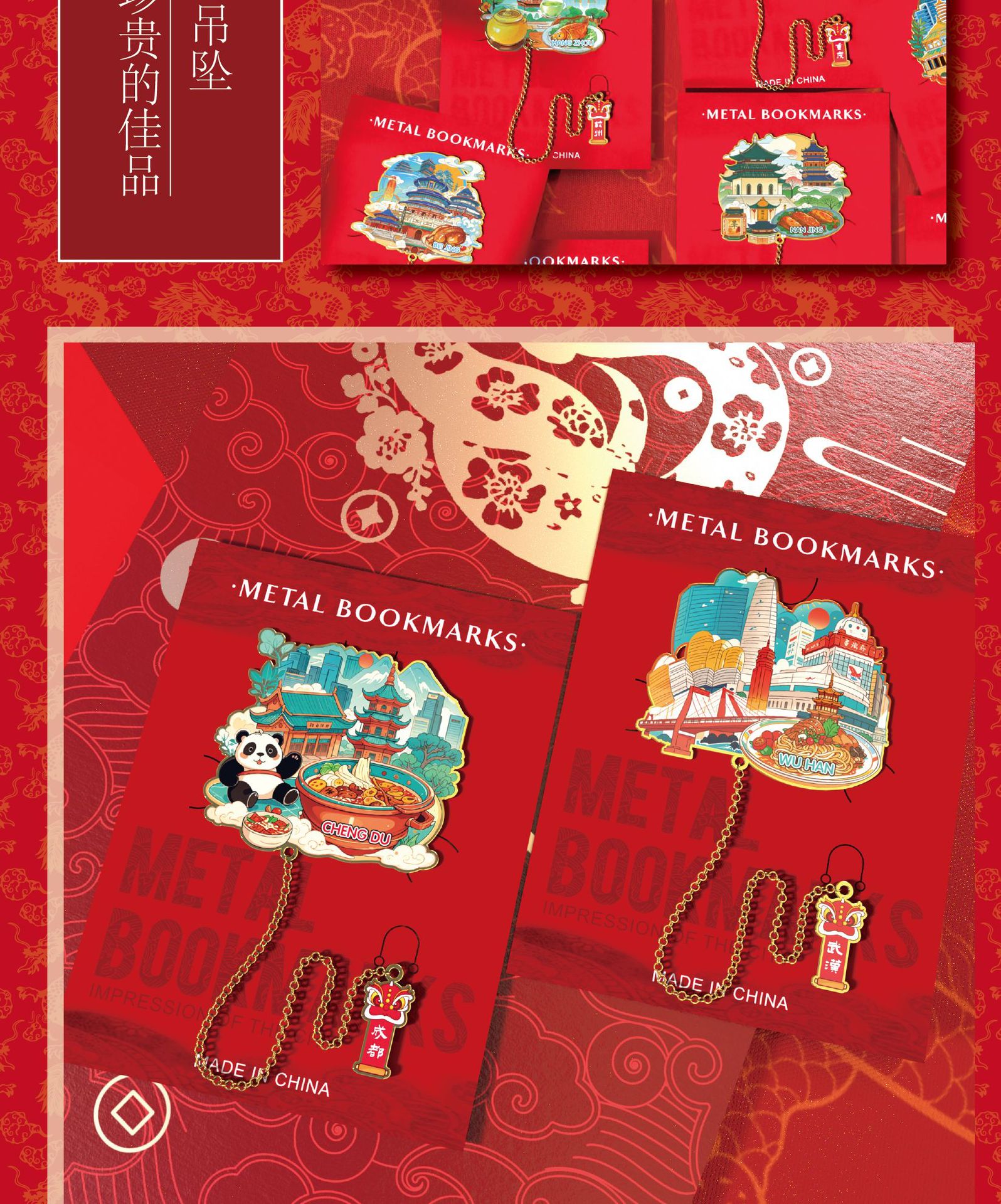 原创中国城市金属书签北京上海西安武汉广州地标文创旅游纪念礼品