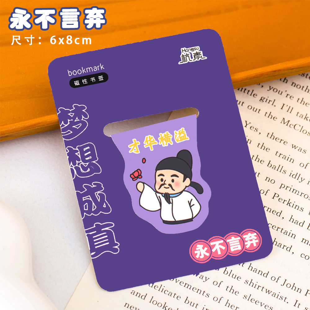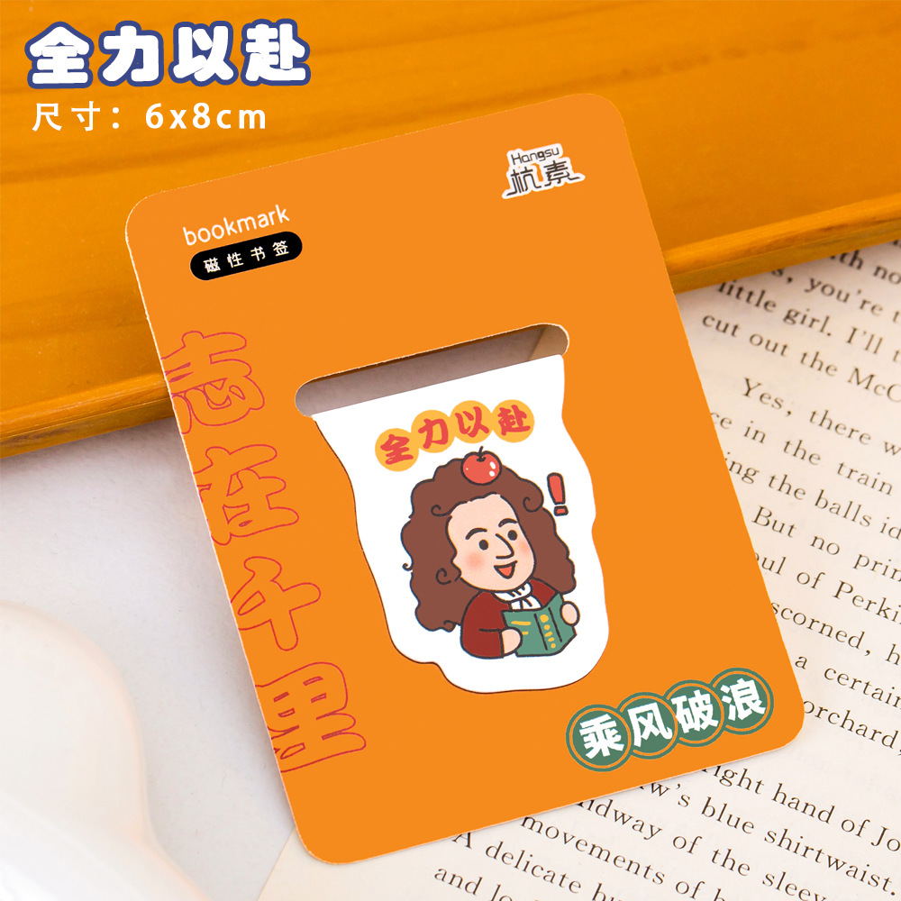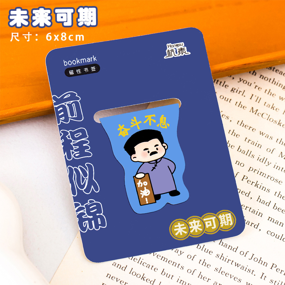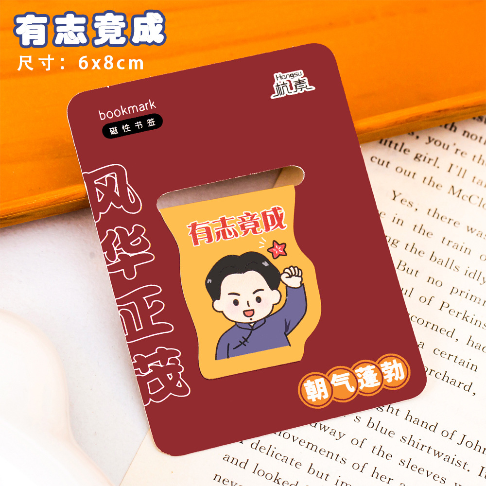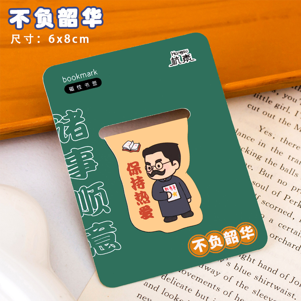 卡通名人磁性书签学生励志文字文具奖励礼品可爱新青年软磁书页夹