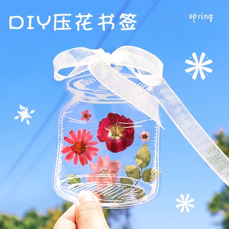 diy手工干花书签透明压花树叶 收集春天的书签创意小瓶子里的春天
