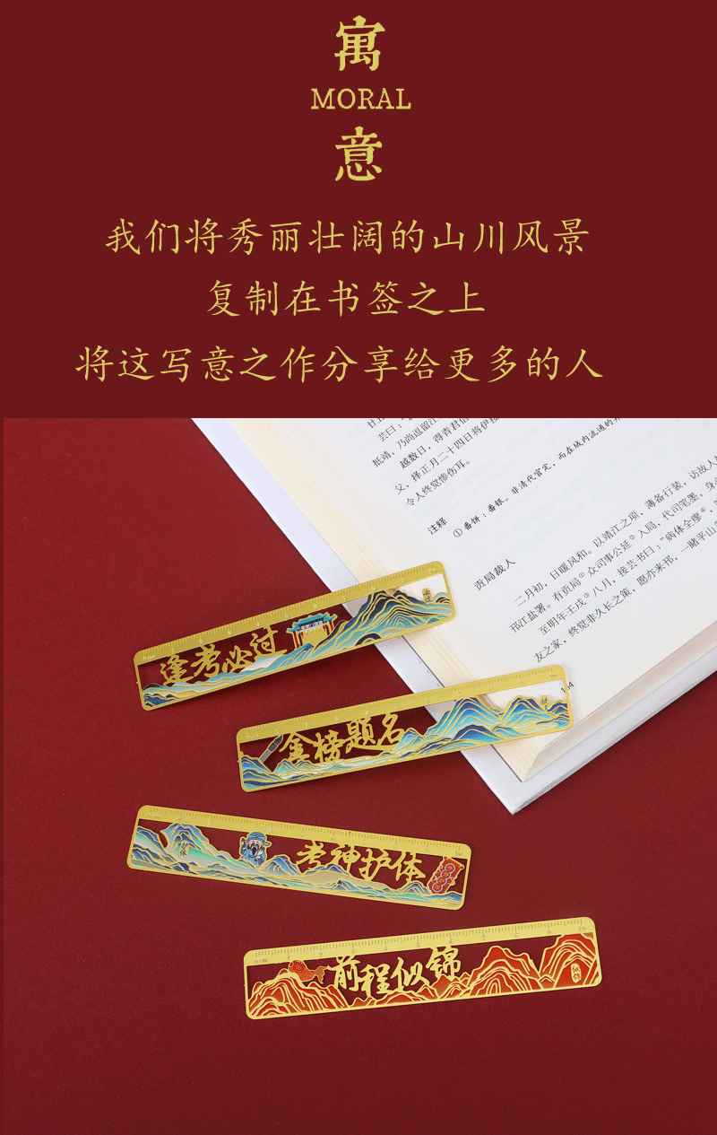 千里江山书签镂空书签毕业季直尺金属书签送老师学生礼品原厂批发