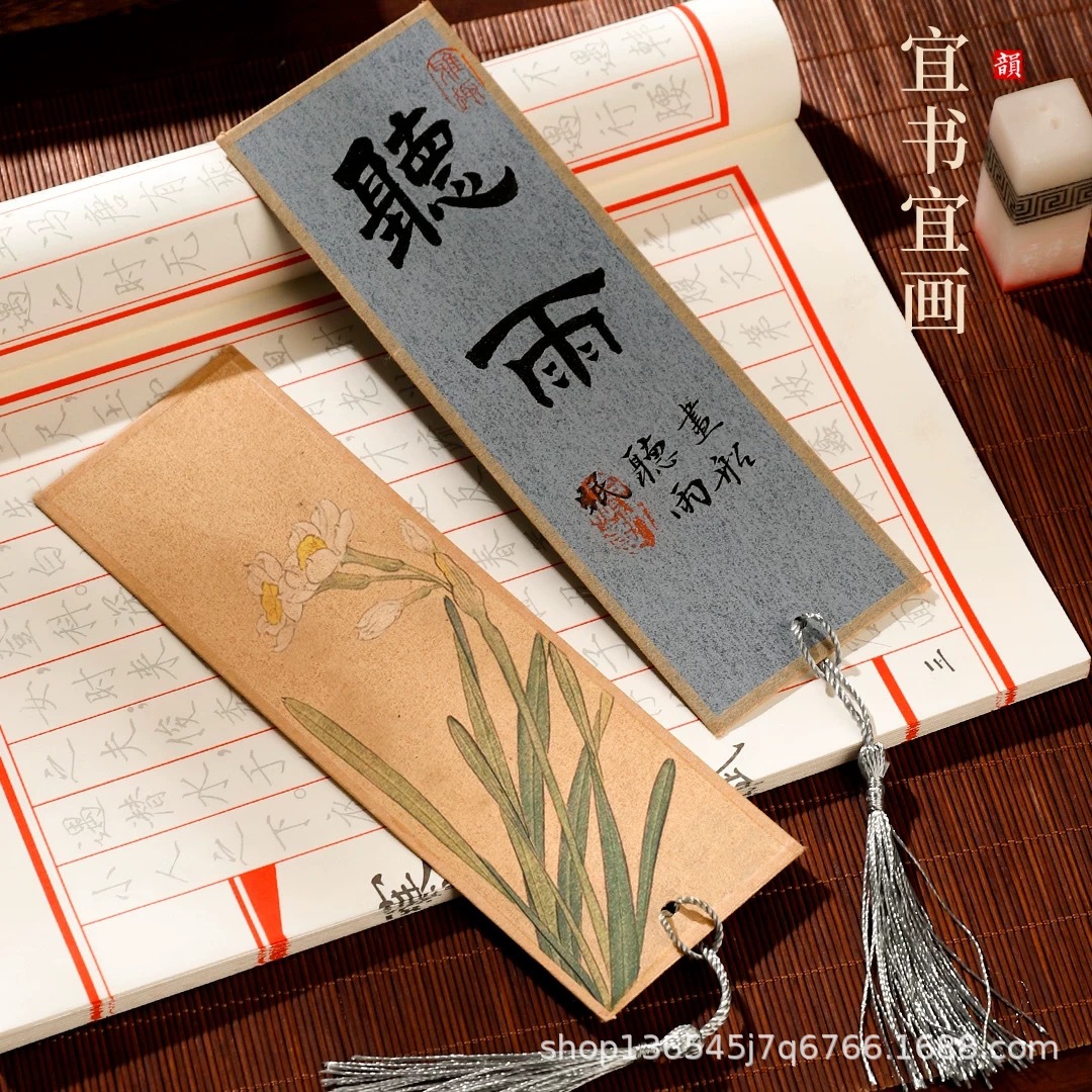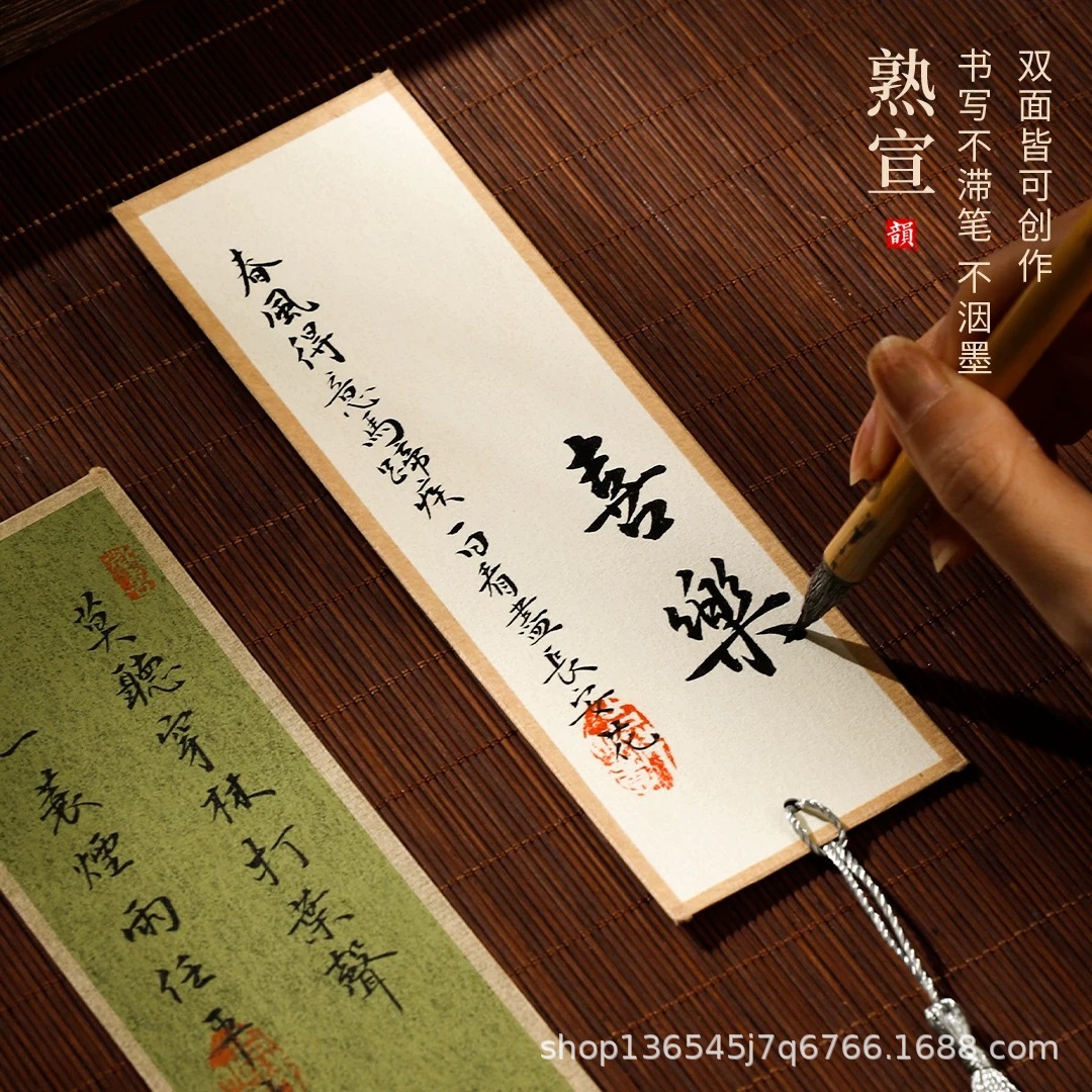 古典中国风加厚楮皮文创书法书签diy空白宣纸半生熟熟宣手写卡片
