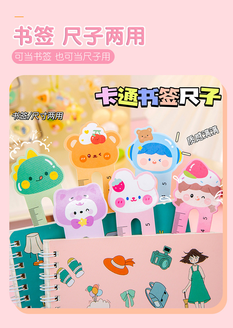 直尺书签纸质卡通创意文具小学生礼品小礼物儿童可爱阅读书签卡片