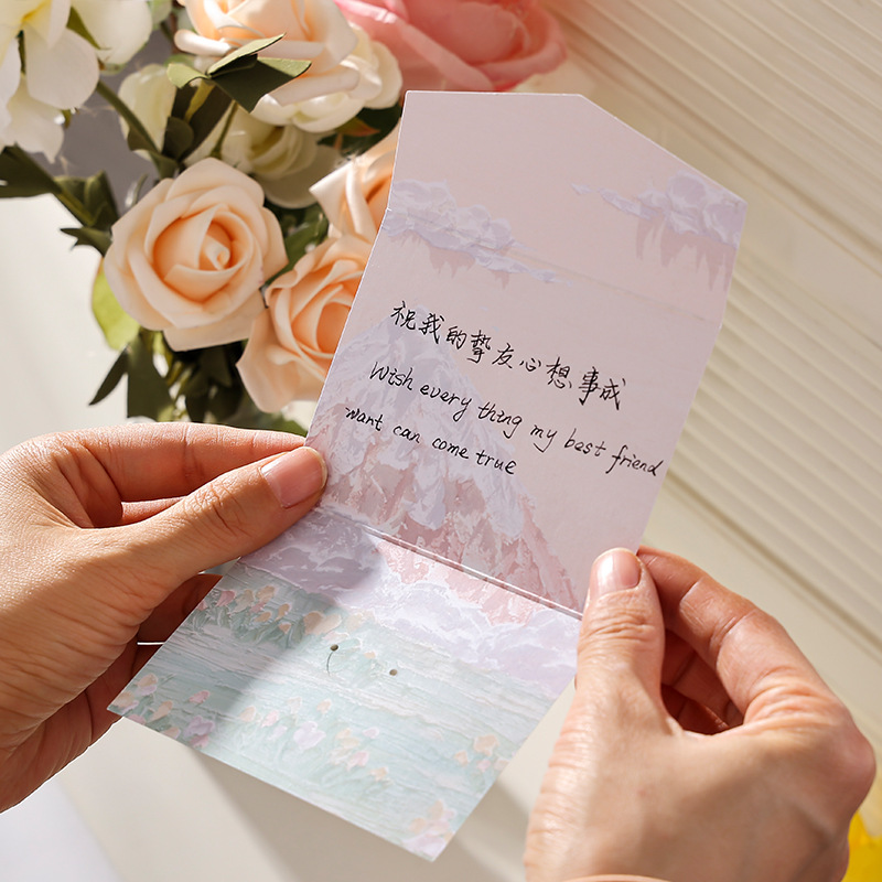 ins网红油画贺卡圣诞节日祝福留言明信片浪漫情人礼物卡纸小卡片