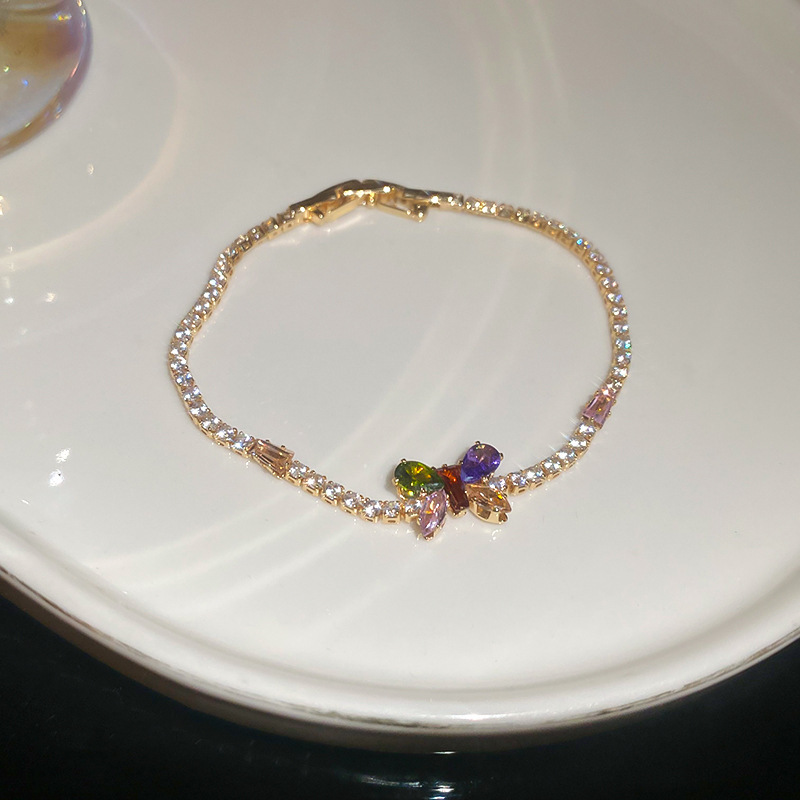 手镯手链高级感手环时尚甜美通勤百搭手饰女锆石彩色蝴蝶吊坠手链