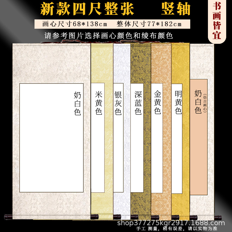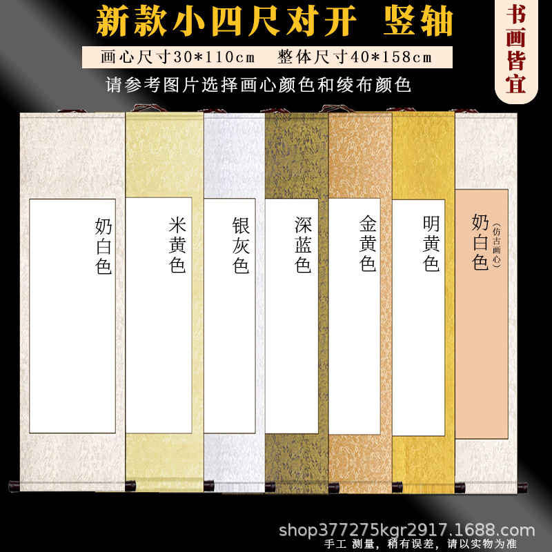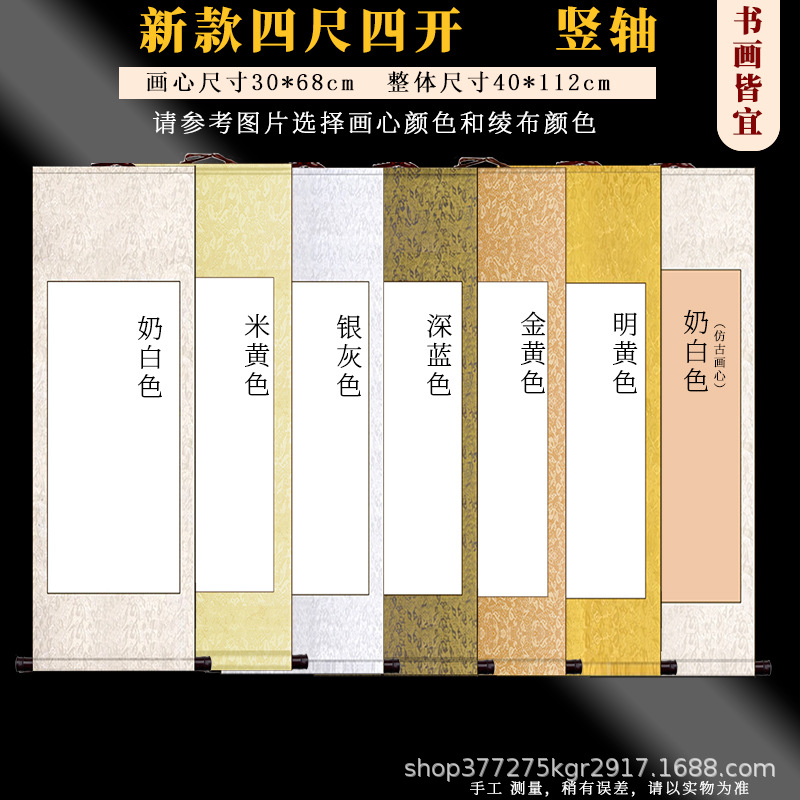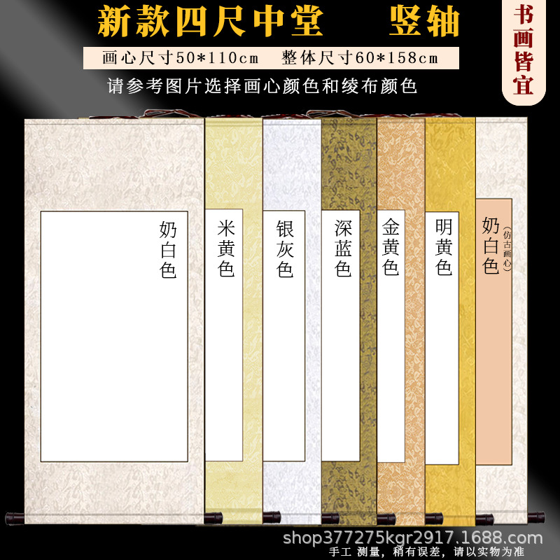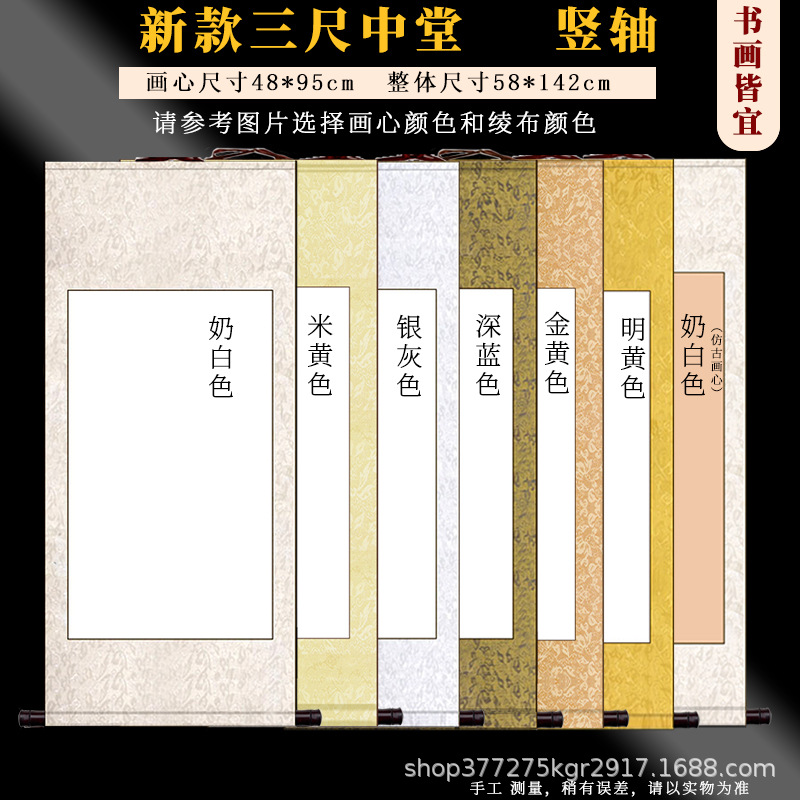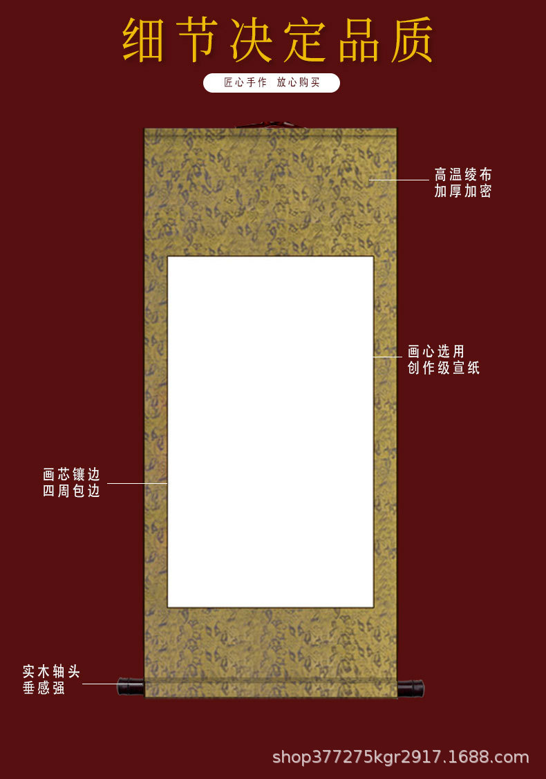 全绫装裱生宣画轴中堂宣纸挂轴书法国画空白画卷卷轴书法作品卷轴