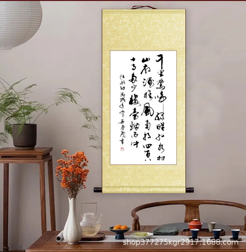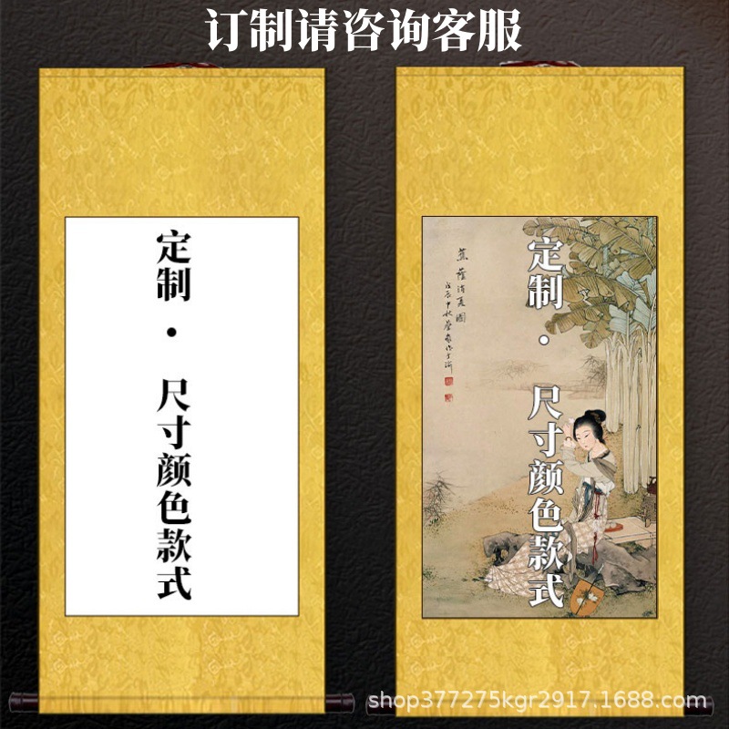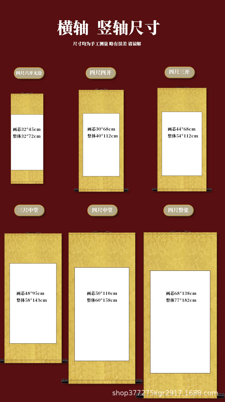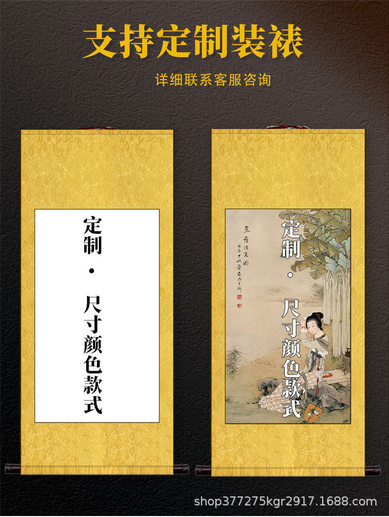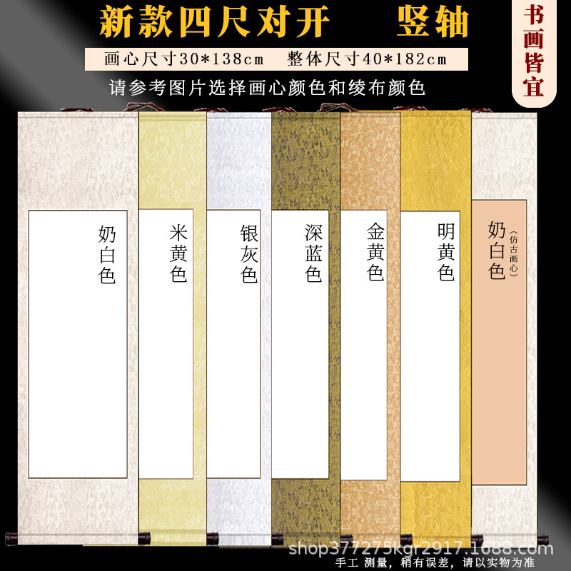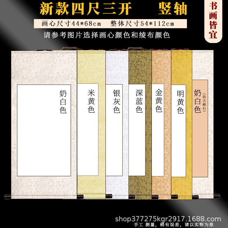 全绫装裱生宣画轴中堂宣纸挂轴书法国画空白画卷卷轴书法作品卷轴