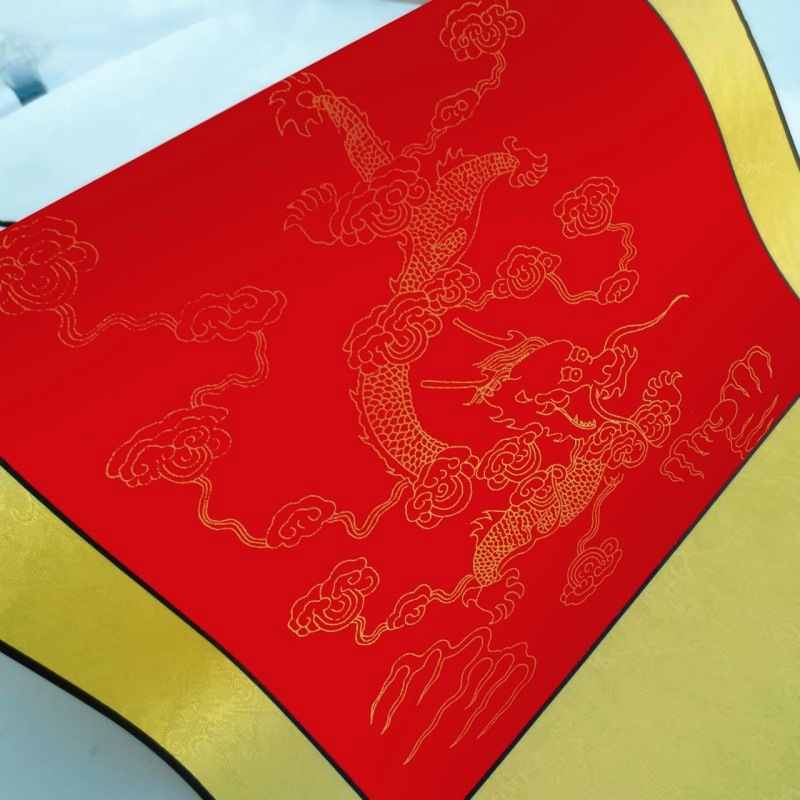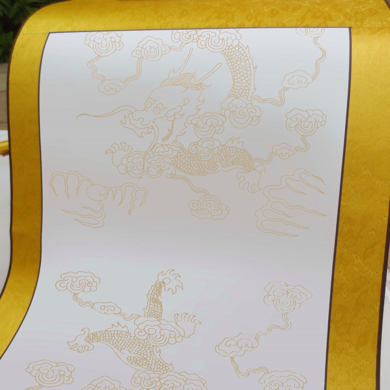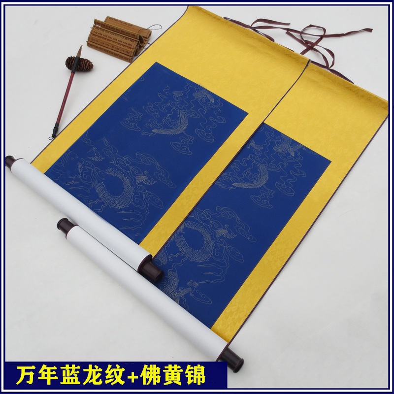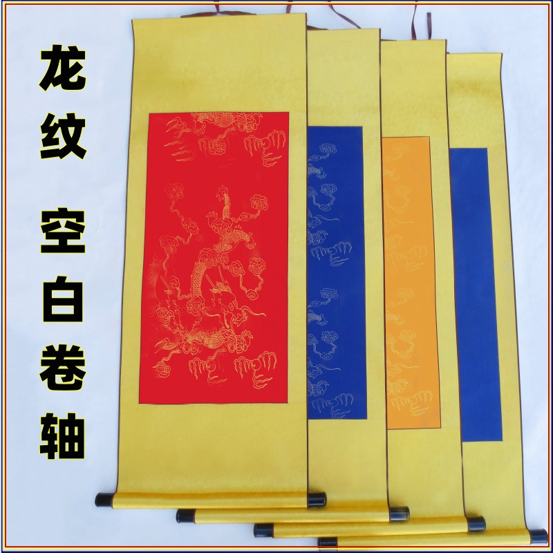 全绫精裱宣纸挂轴画轴红龙纹黄龙纹蓝龙纹空白卷轴藏文毛笔书法