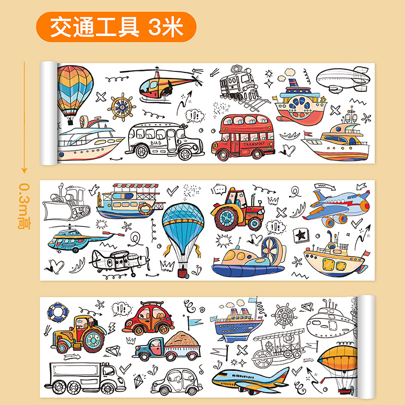 儿童涂鸦画卷填色绘画画纸长画卷幼儿园宝宝涂色画布可贴墙不脏墙