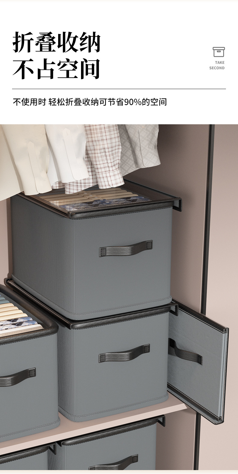 新款家用衣服收纳盒可折叠布艺分类整理箱装内衣裤子抽屉式储物盒