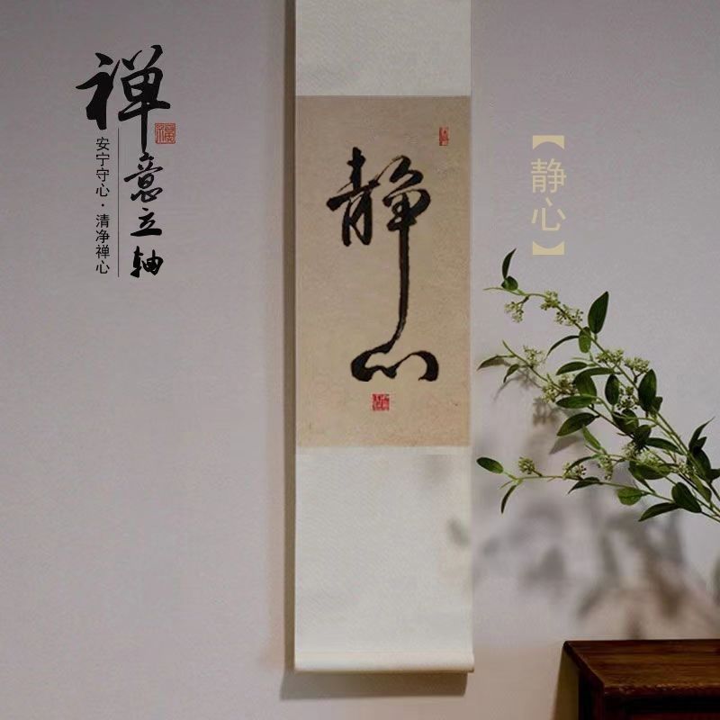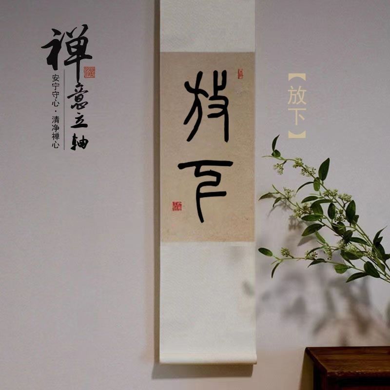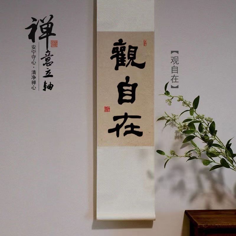 观自在手写真迹书法禅意中式装饰挂画茶室客厅玄关字画卷轴