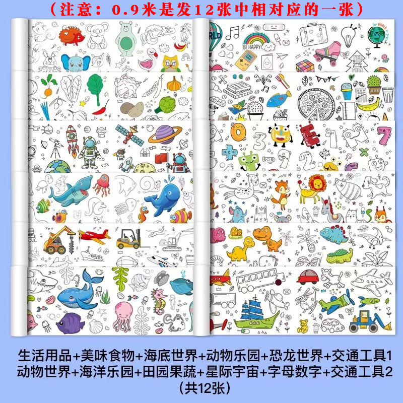 超长儿童涂鸦画卷女孩填色绘画纸长画卷幼儿园宝宝涂色画布可贴墙
