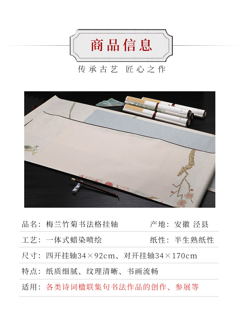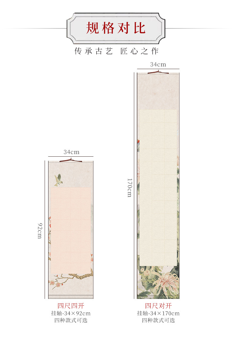 书法空白卷轴28格五言七言古诗毛笔字蜡染半生熟宣纸作品专用纸