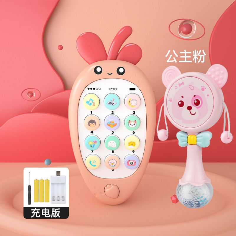 婴儿可咬牙胶宝宝仿真手机0-1岁幼儿音乐电话玩具早教益智故事机
