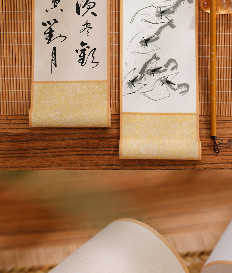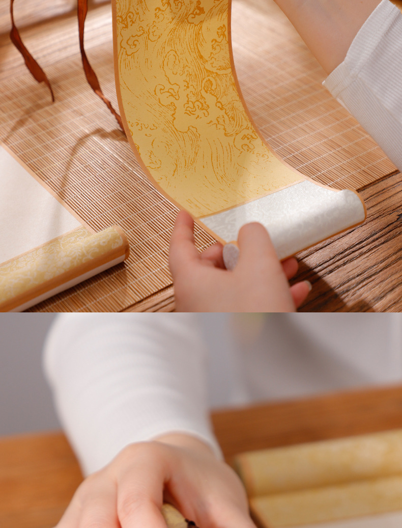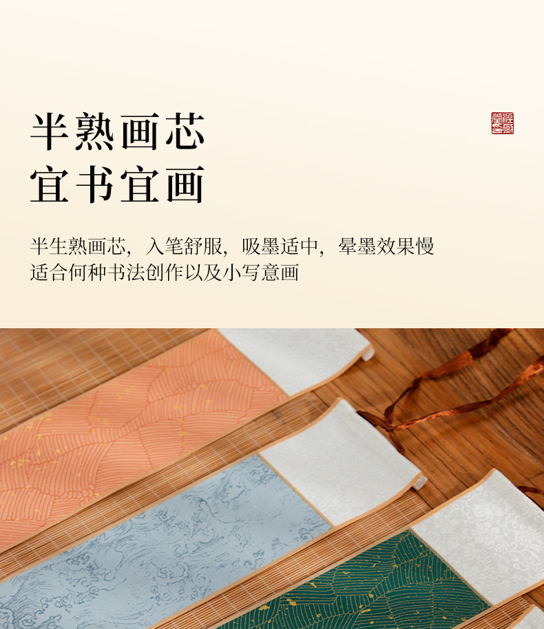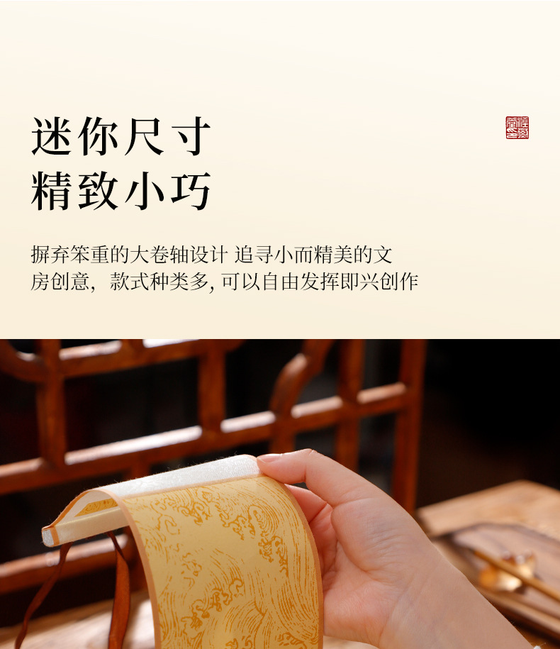 迷你小卷轴小号挂轴空白挂画工笔熟宣宣纸蜡染半生半熟手卷