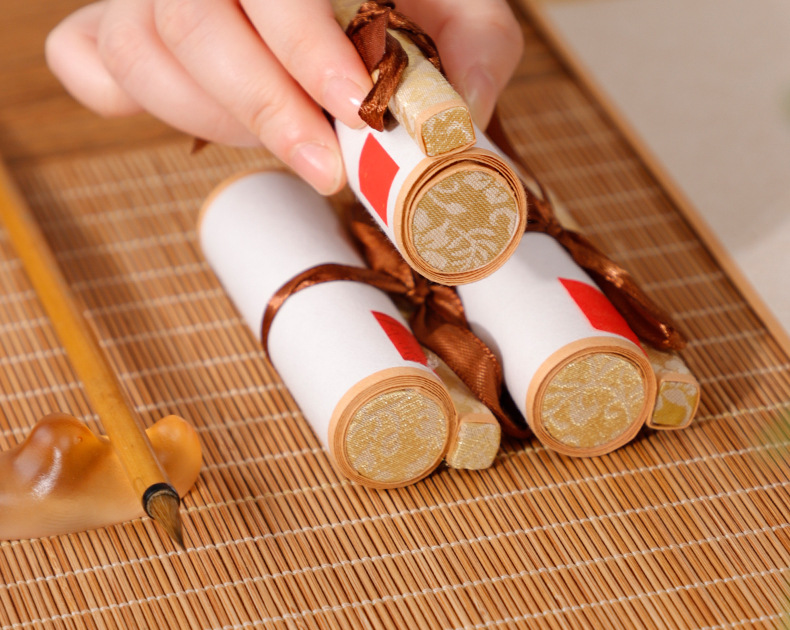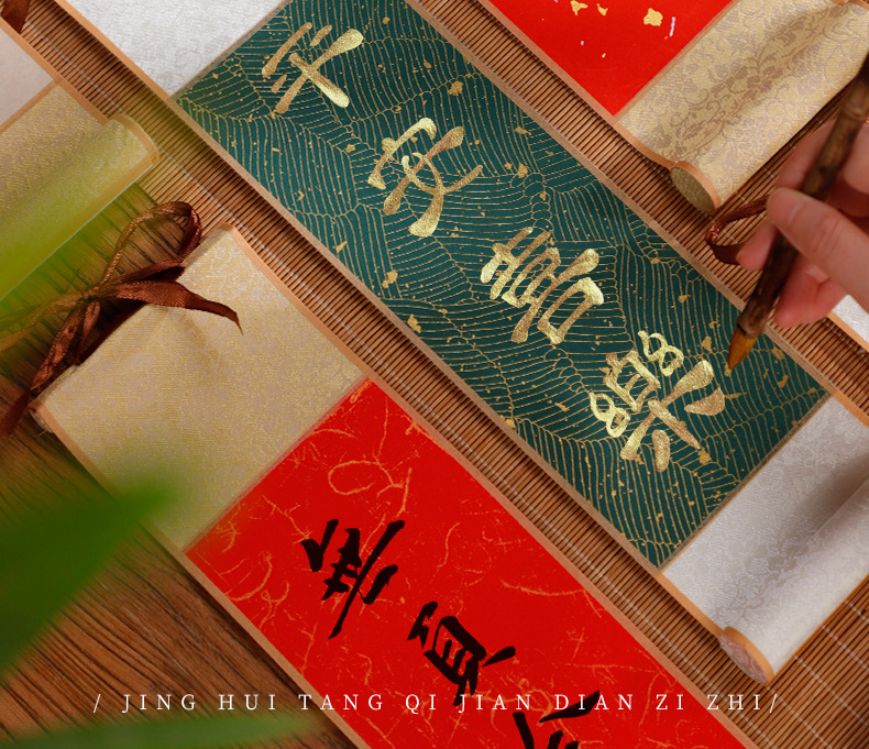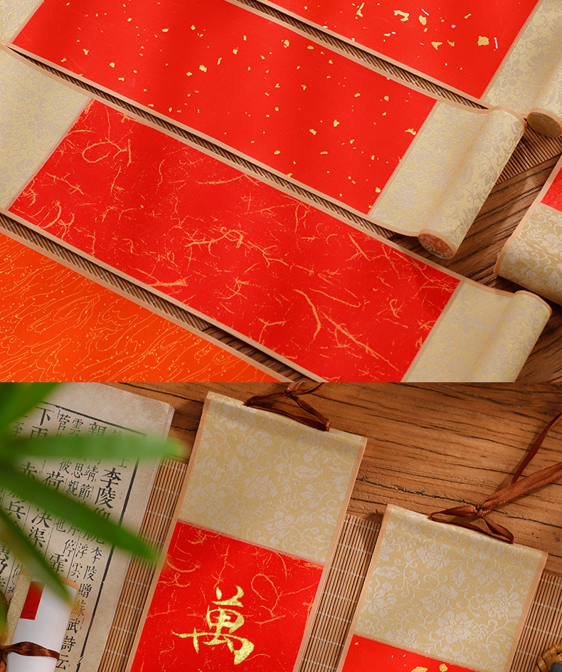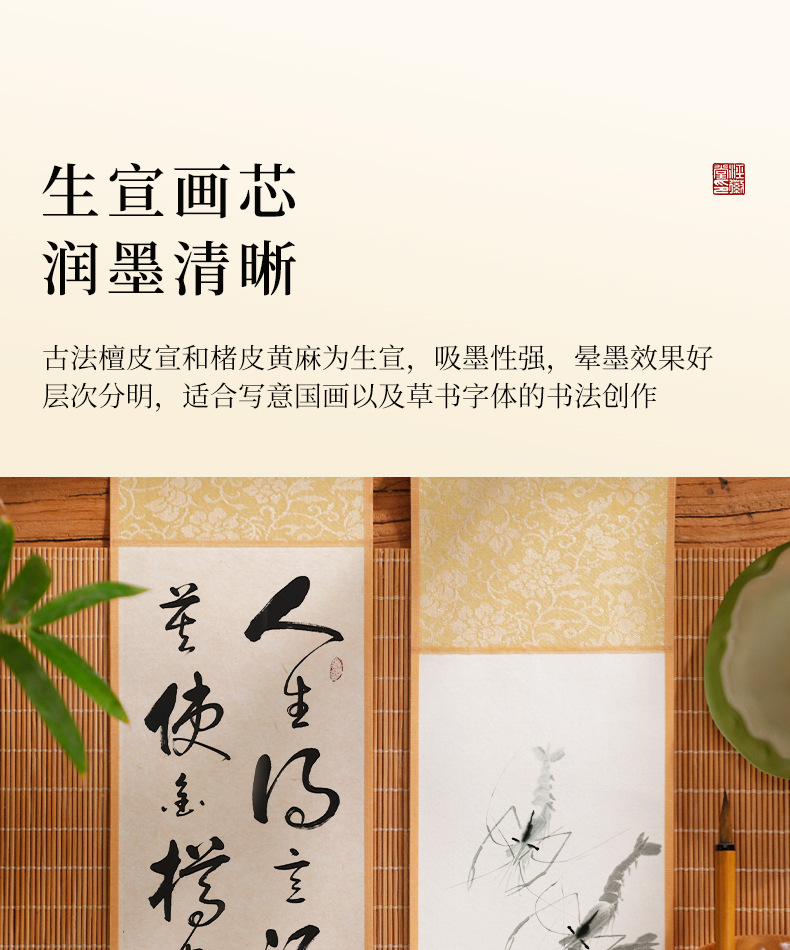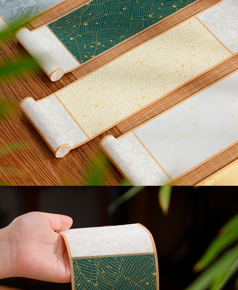 迷你小卷轴小号挂轴空白挂画工笔熟宣宣纸蜡染半生半熟手卷