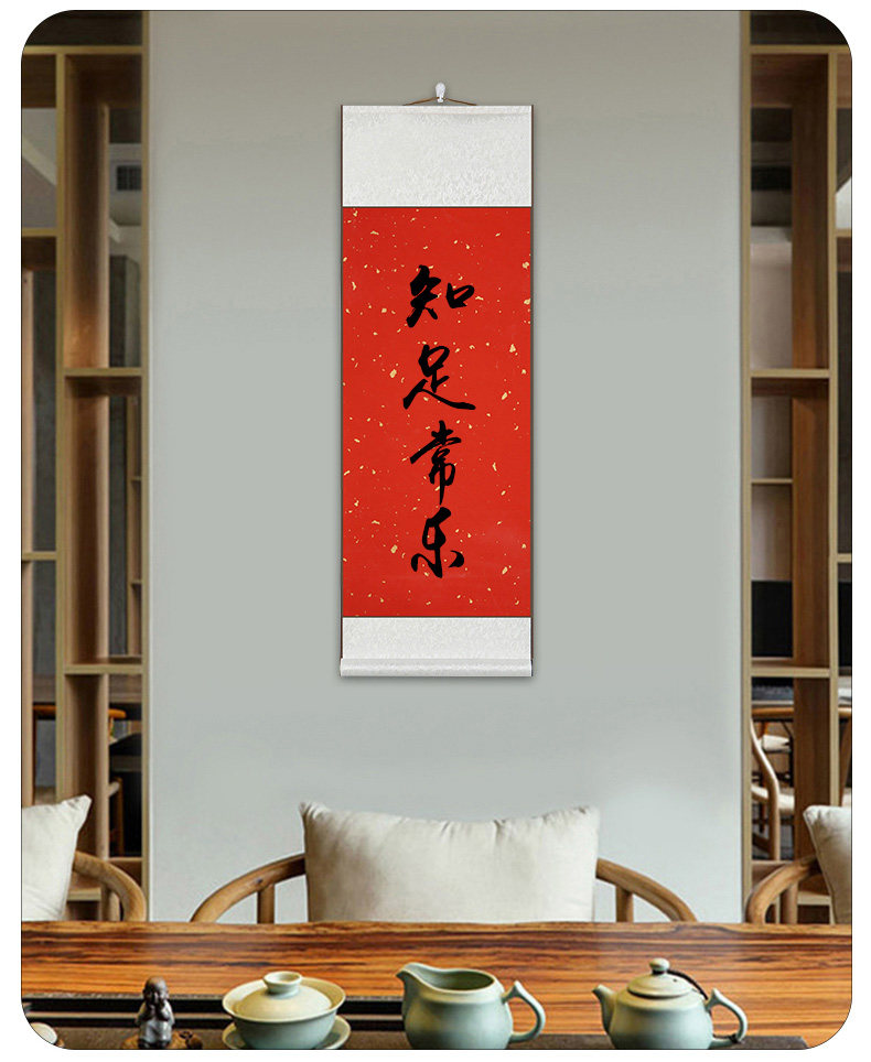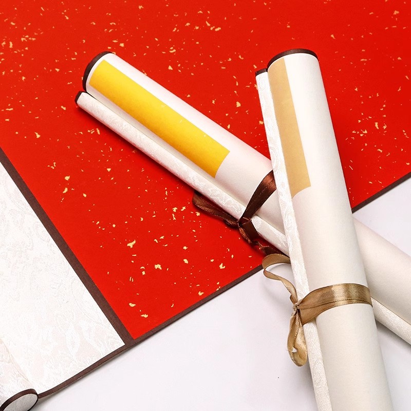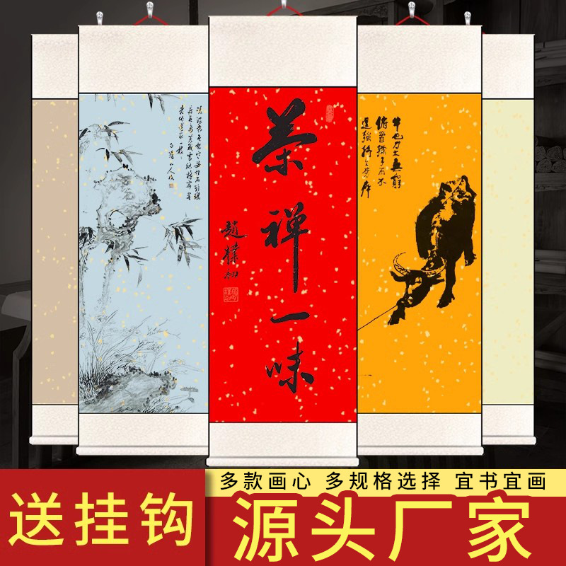精裱烫金画轴国画书法四开三开空白纸无日历款卷轴万年红挂画作品