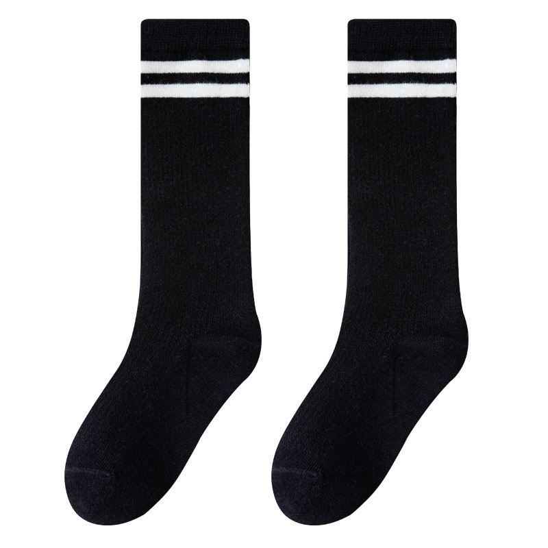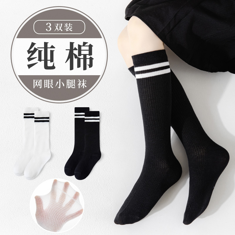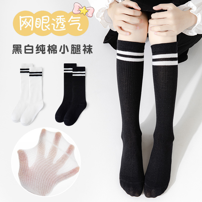 儿童长筒袜春夏薄款条纹二杠网眼小腿袜女童舞蹈袜黑白学生袜