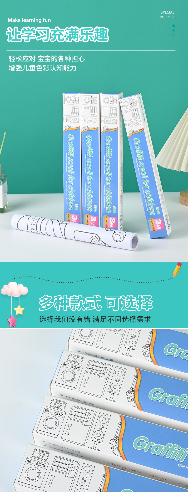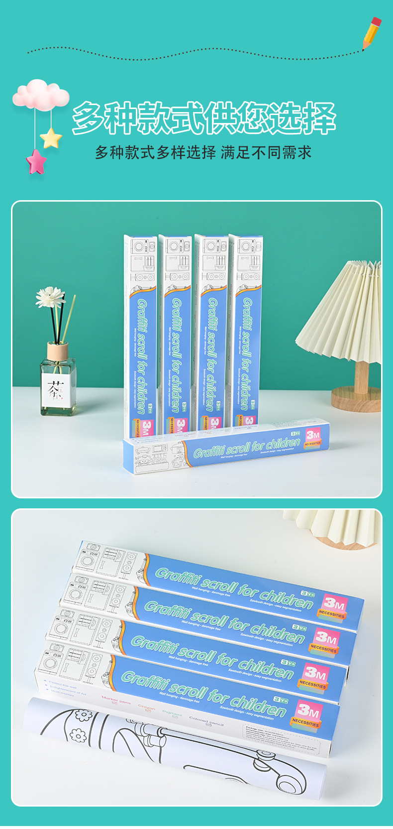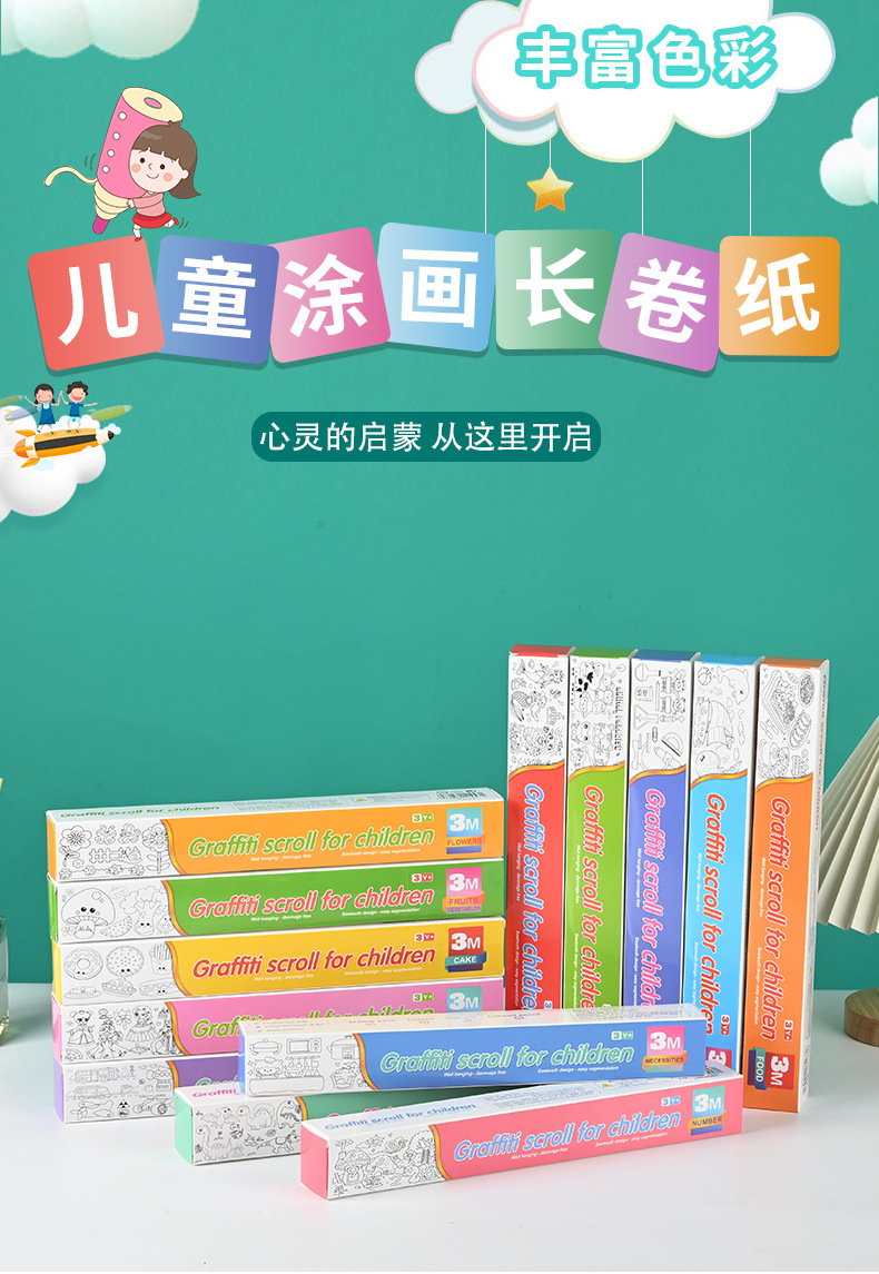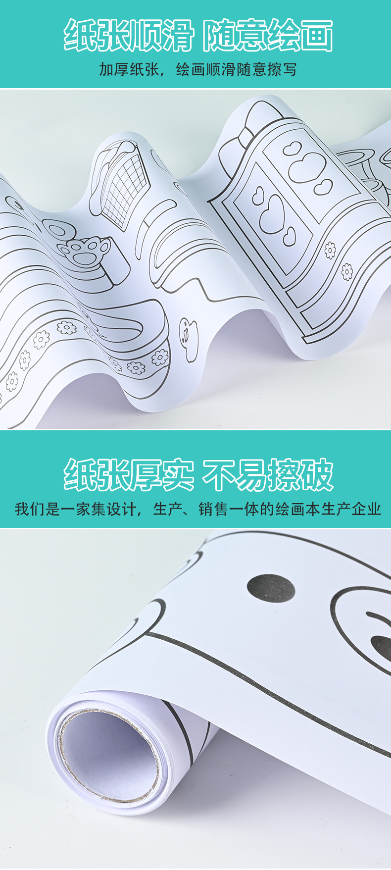 儿童男孩女孩涂鸦超长画卷填色绘画本幼儿园涂色可贴墙不脏墙批发