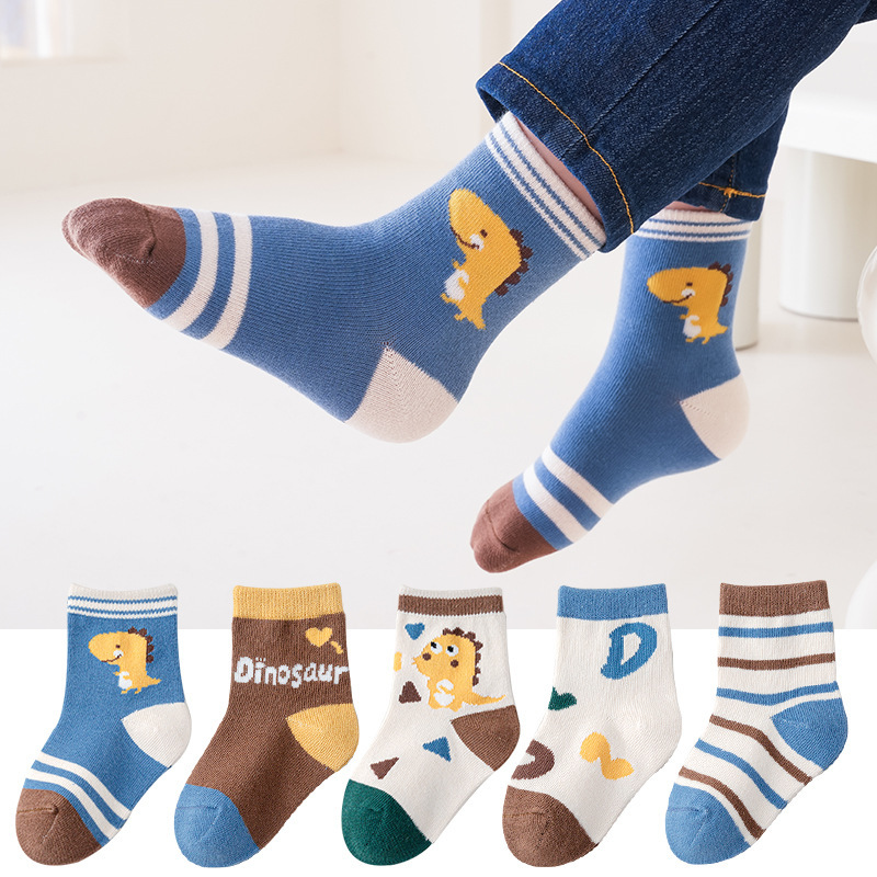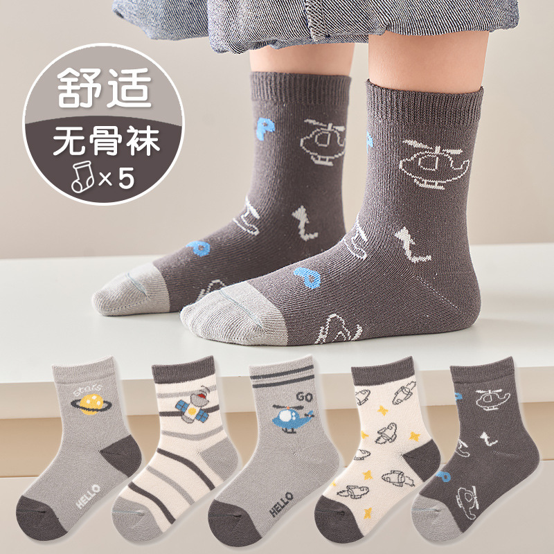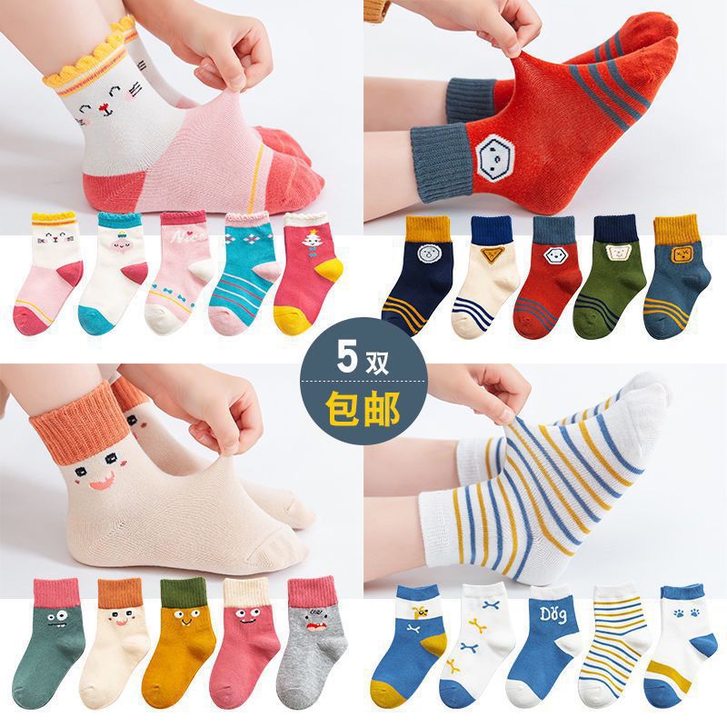 D002儿童袜子秋冬涤棉中筒袜宝宝袜子男童女童地板袜吸汗卡通批发