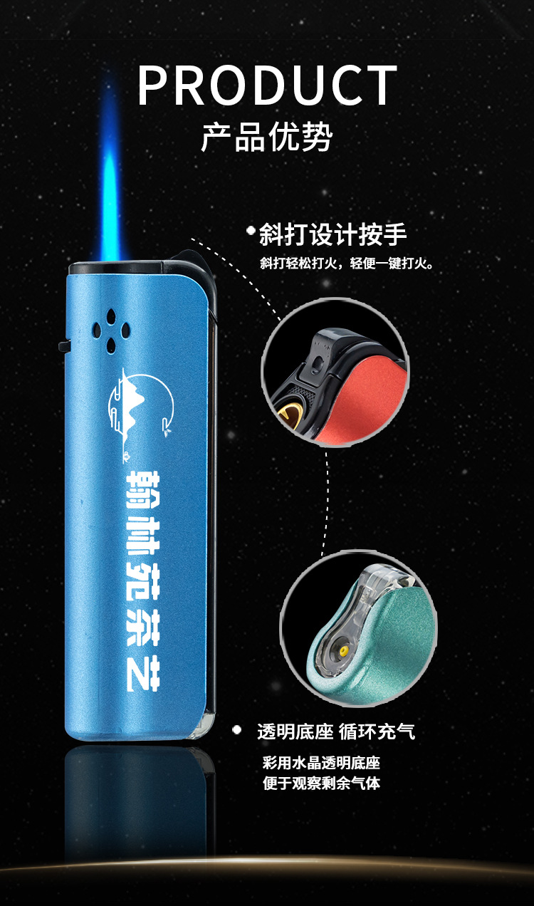 新款创意斜打金属防风打火机点烟器充气直冲可充气防爆批发家用