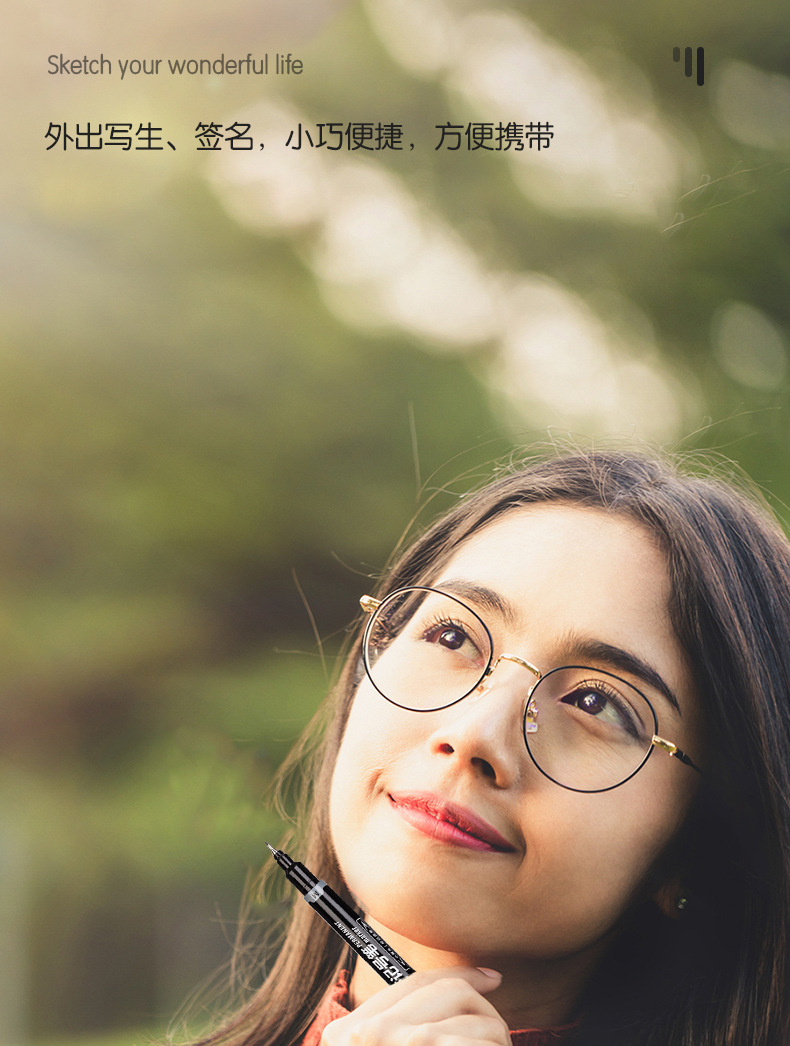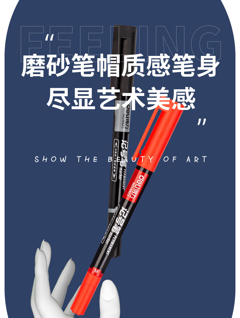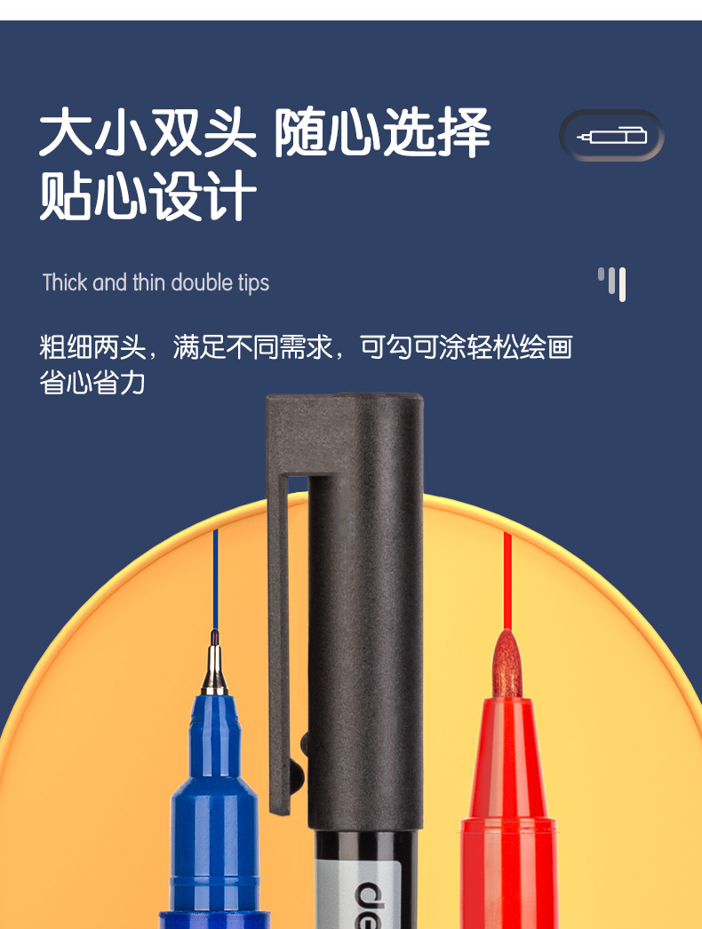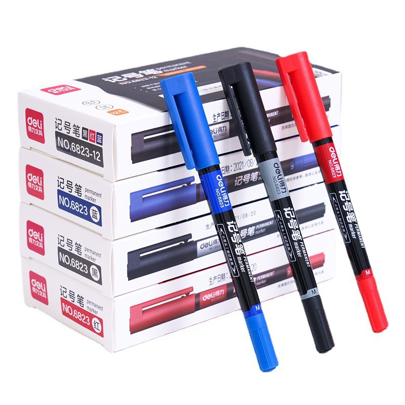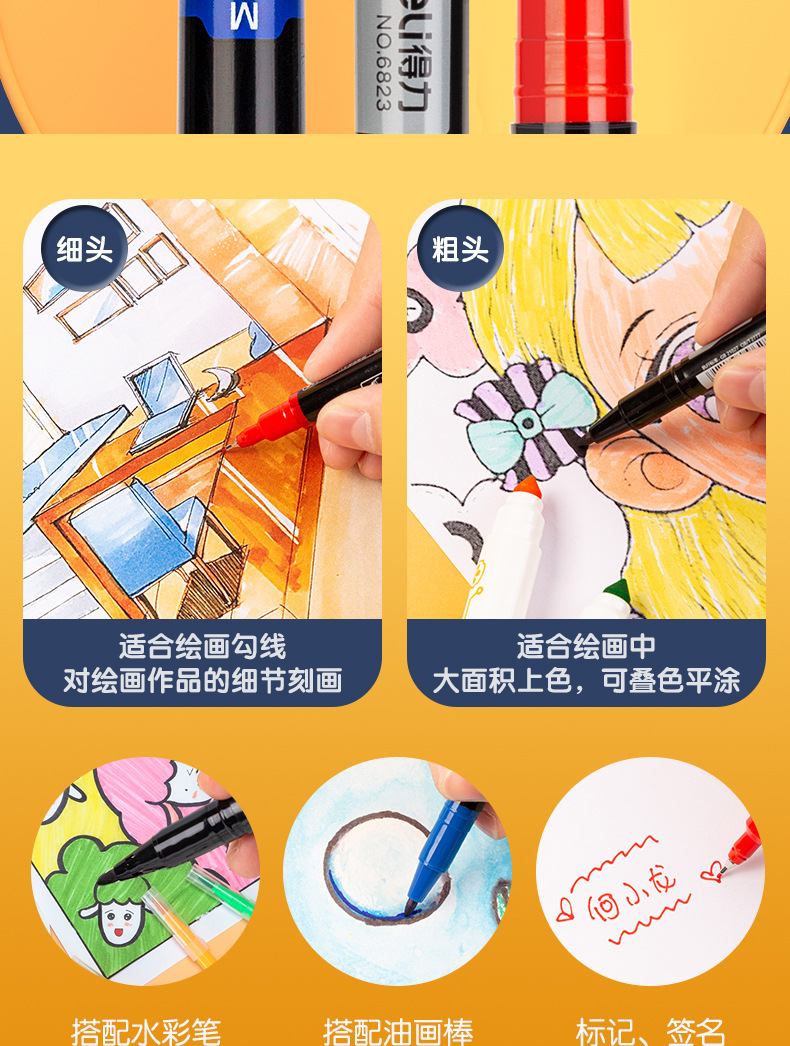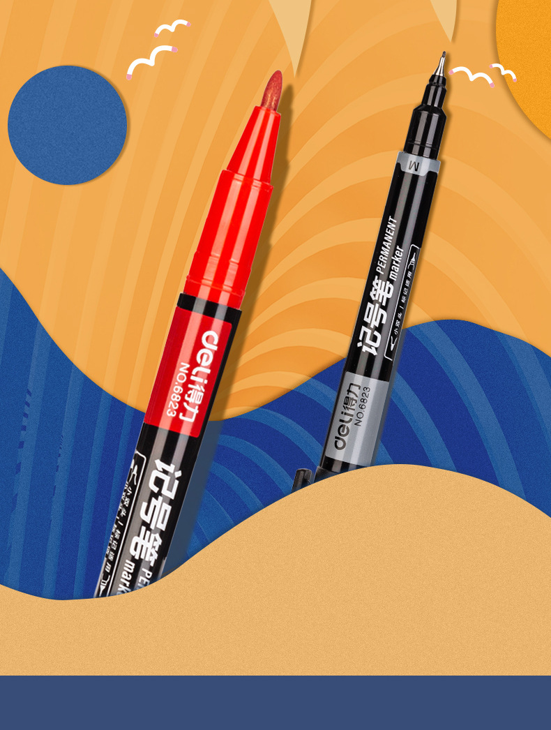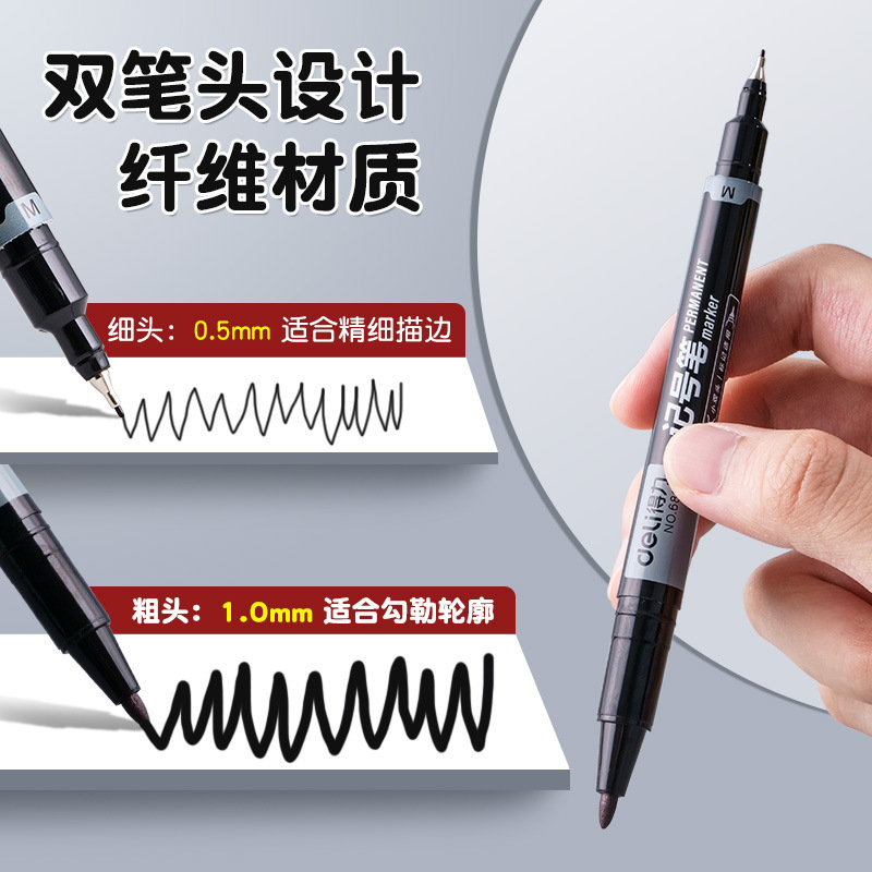得力6823双头记号笔勾线笔美术生黑色油性小头细头儿童绘画描边黑
