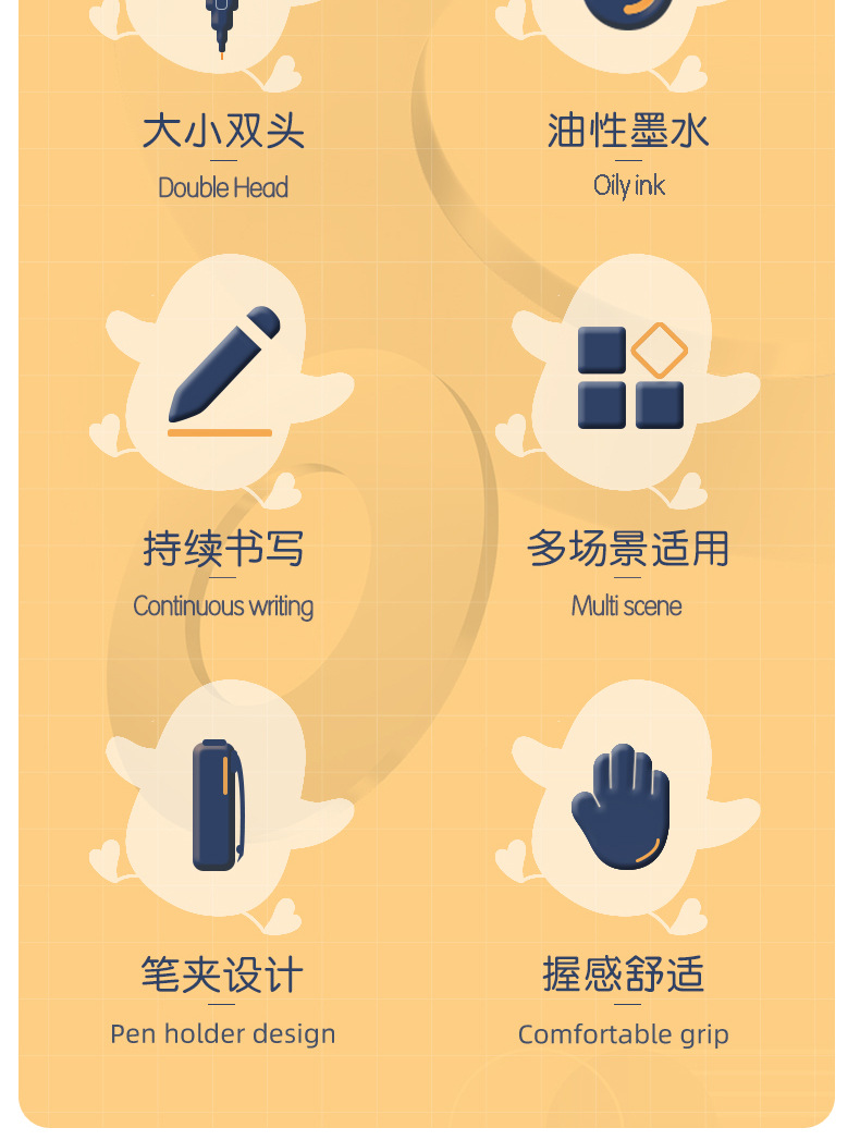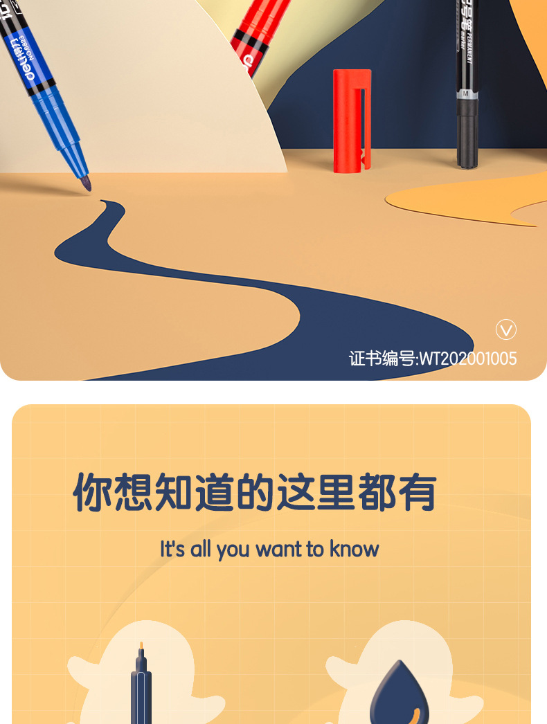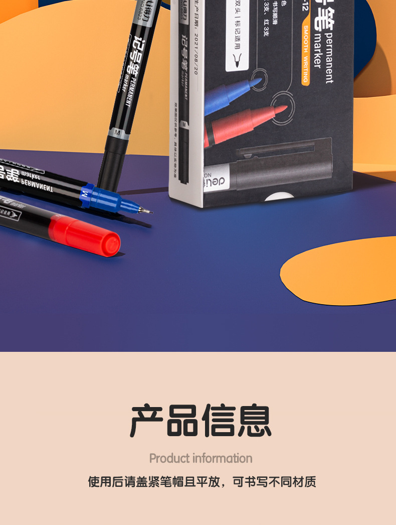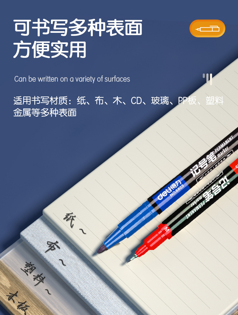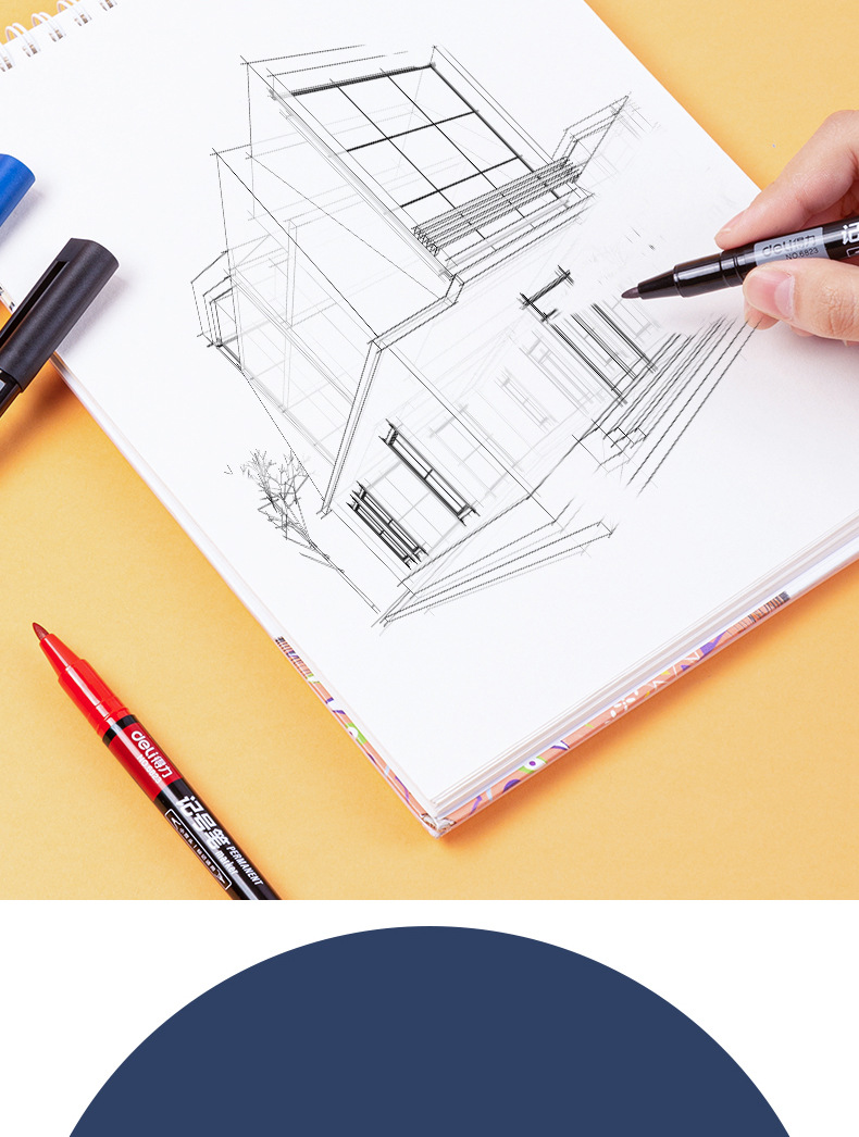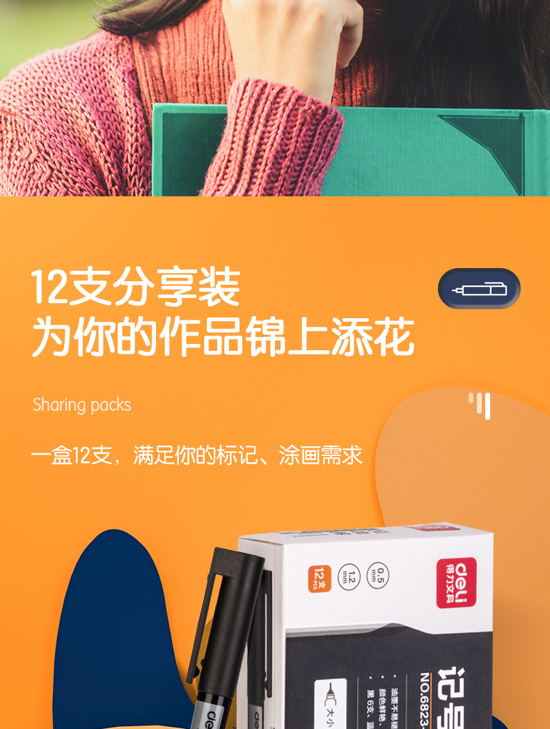 得力6823双头记号笔勾线笔美术生黑色油性小头细头儿童绘画描边黑