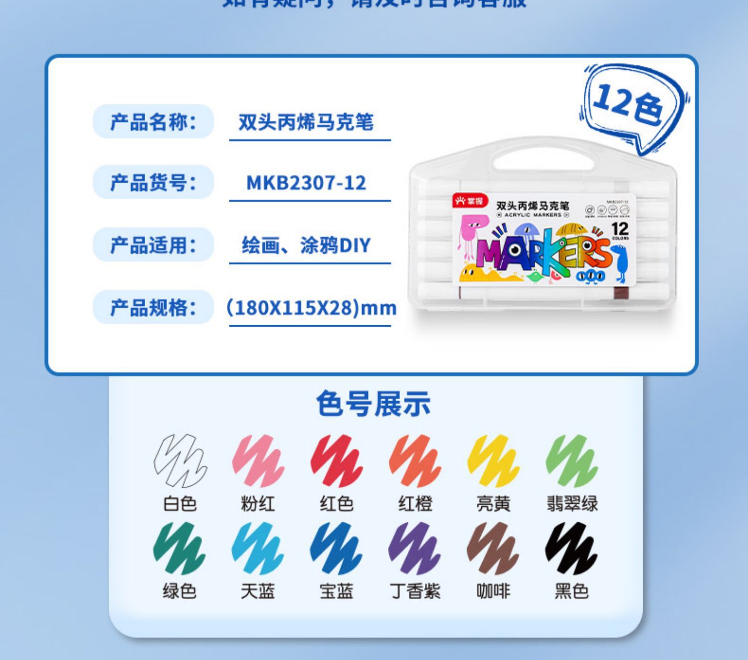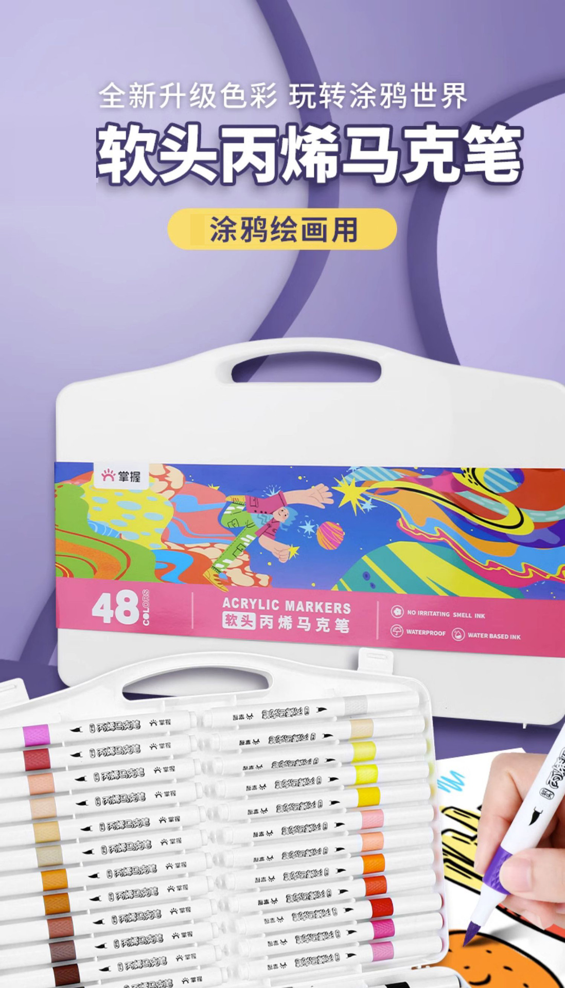 掌握马克笔丙烯颜料黑色折叠儿童学生专用速干彩色笔马克笔套装