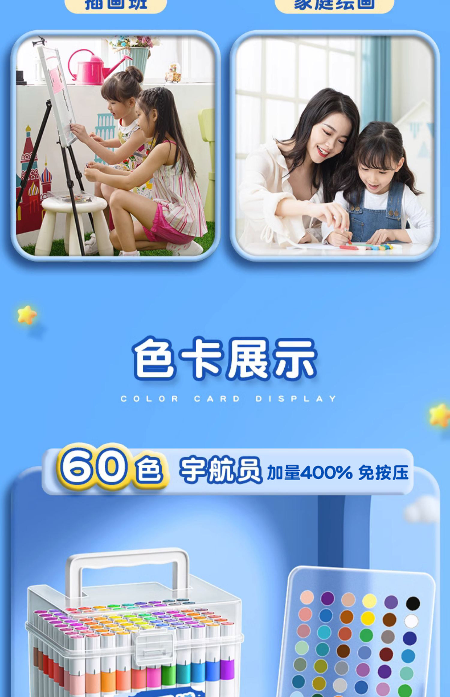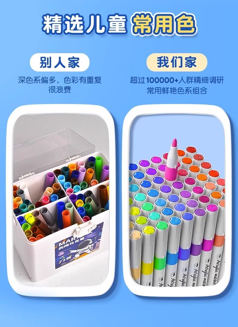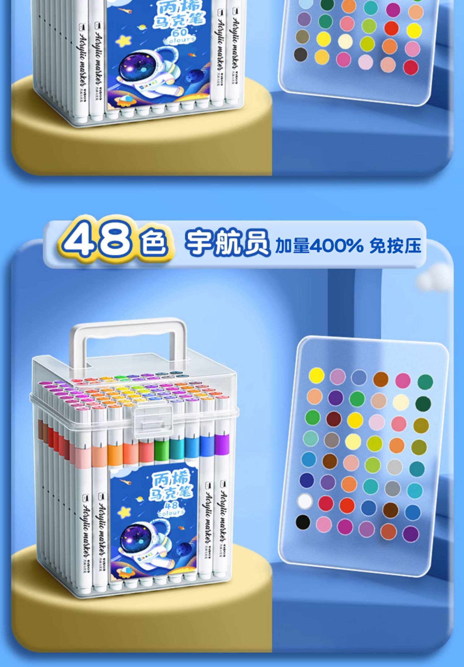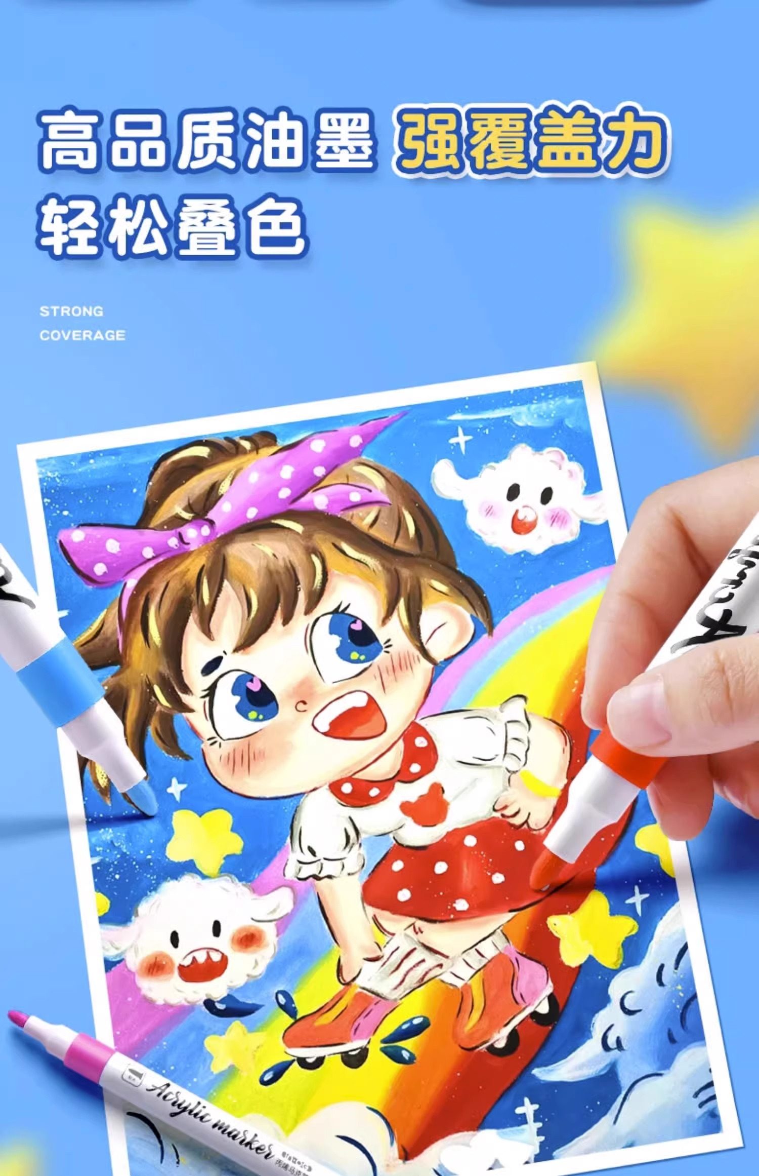 丙烯马克笔小学生专用美术可水洗不透色可叠色彩笔80彩色笔防水