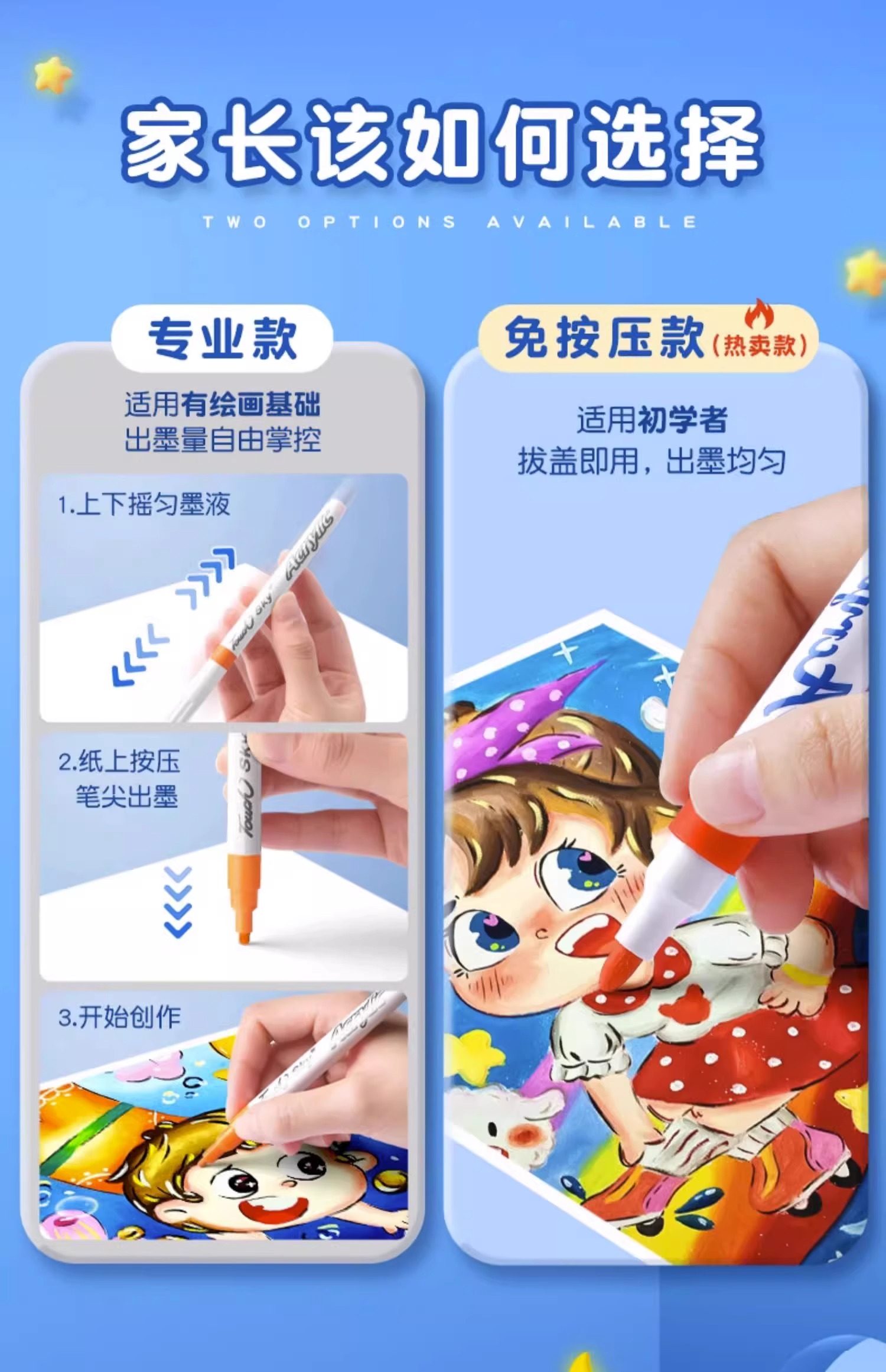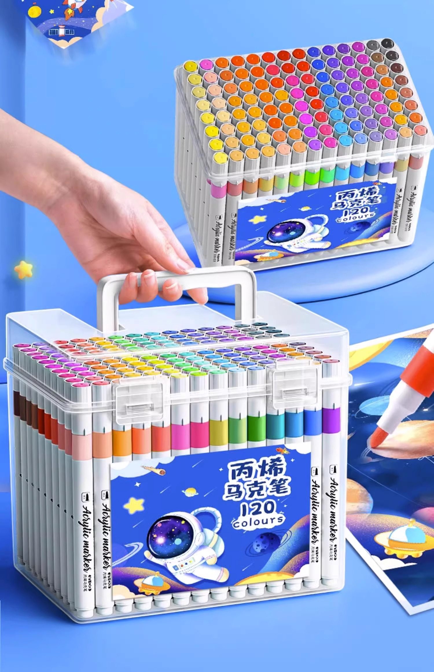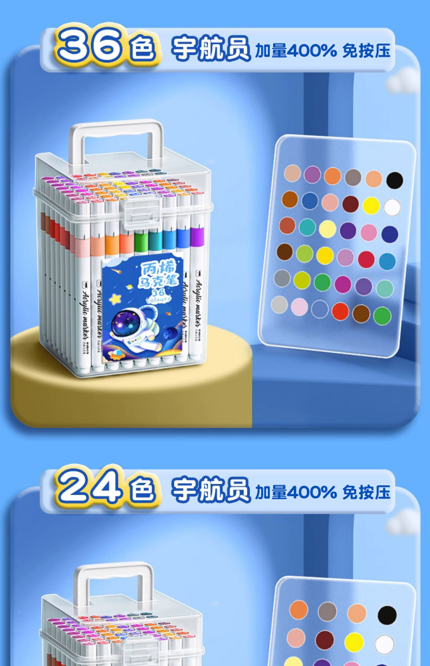 丙烯马克笔小学生专用美术可水洗不透色可叠色彩笔80彩色笔防水