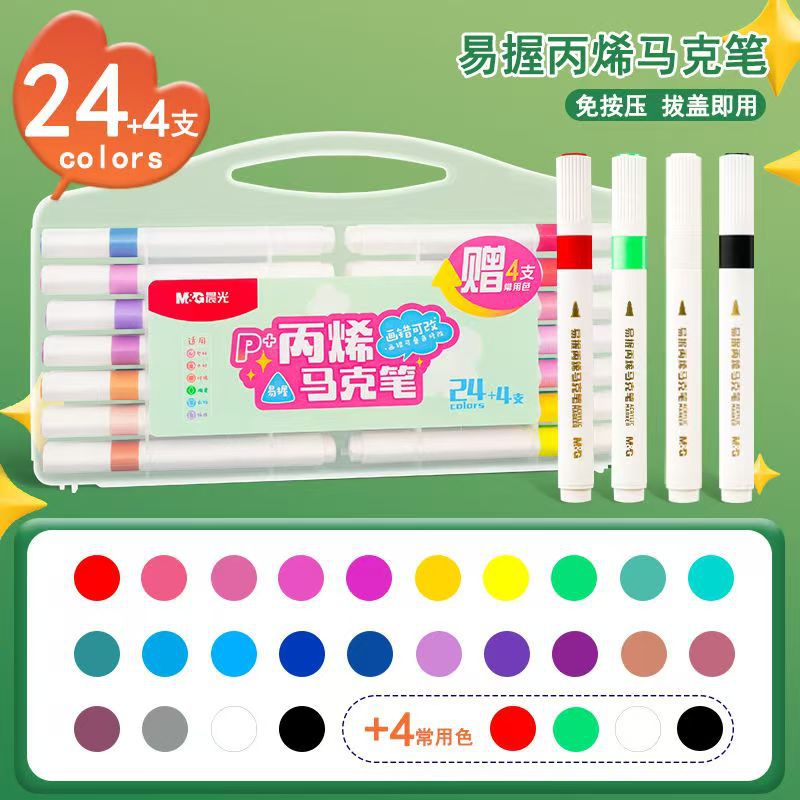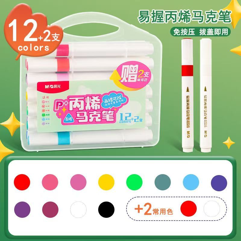 晨光易握丙烯马克笔T80C1免按压可叠色三角杆不透色画画美术防水