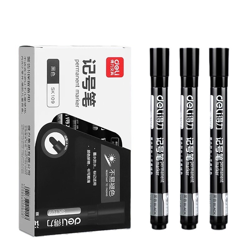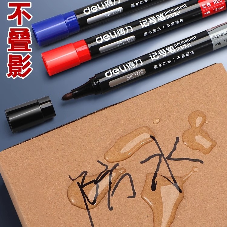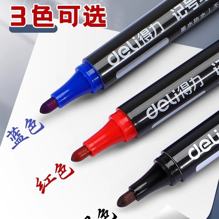 得力6881记号笔单头油性笔速干防水粗头签字快递大头记号笔批发