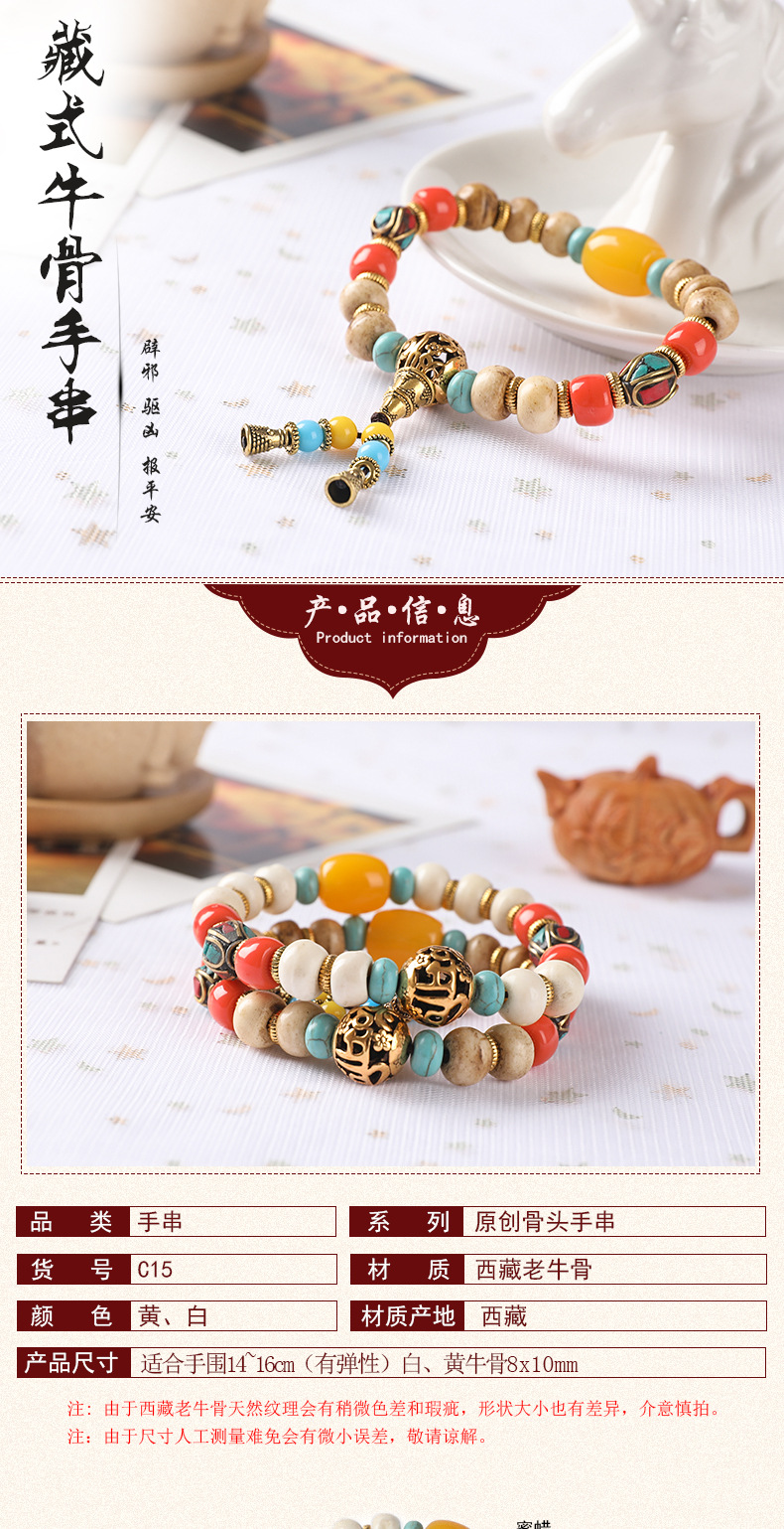 天然保真牛骨手串西藏牦牛骨藏式骨头尼泊尔手串文玩饰品手链批发