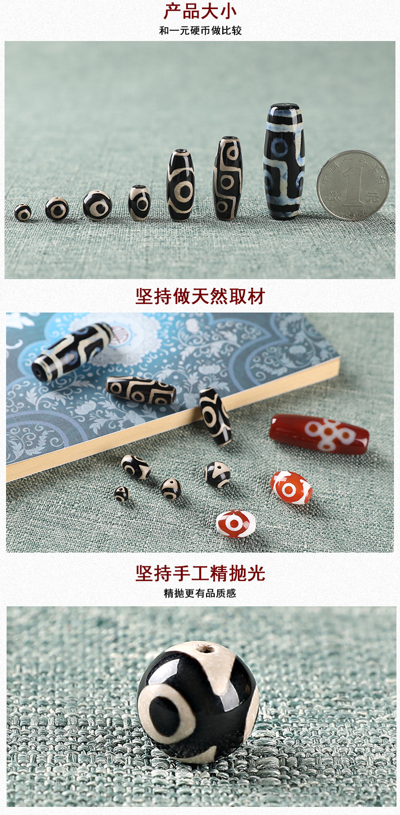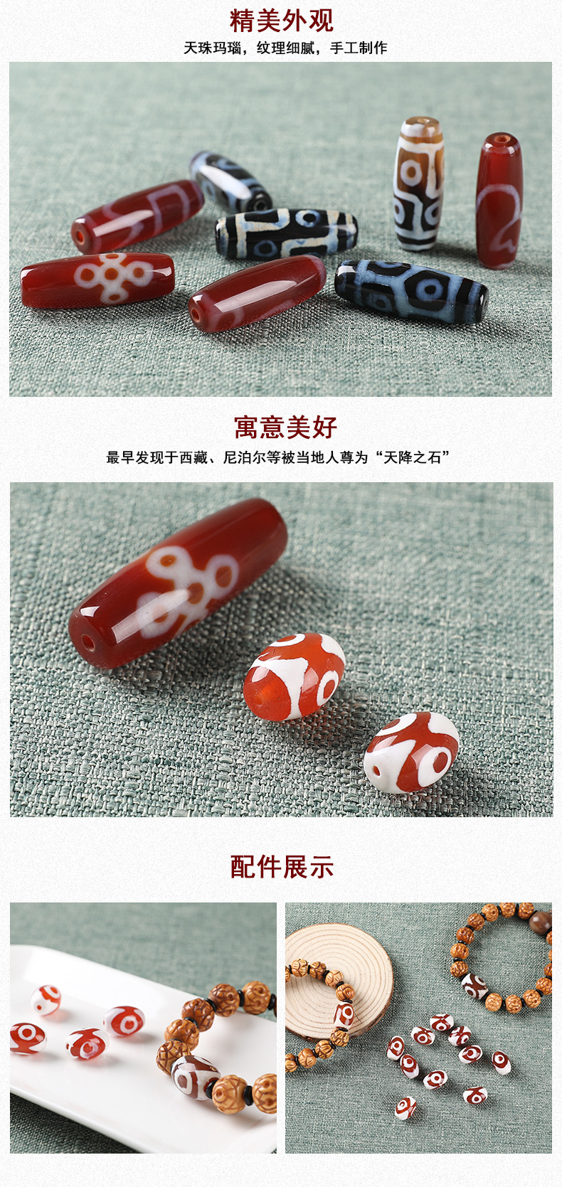 藏式天珠玛瑙批发 吊坠配饰钥匙扣DIY星月菩提配件 三眼天珠项链