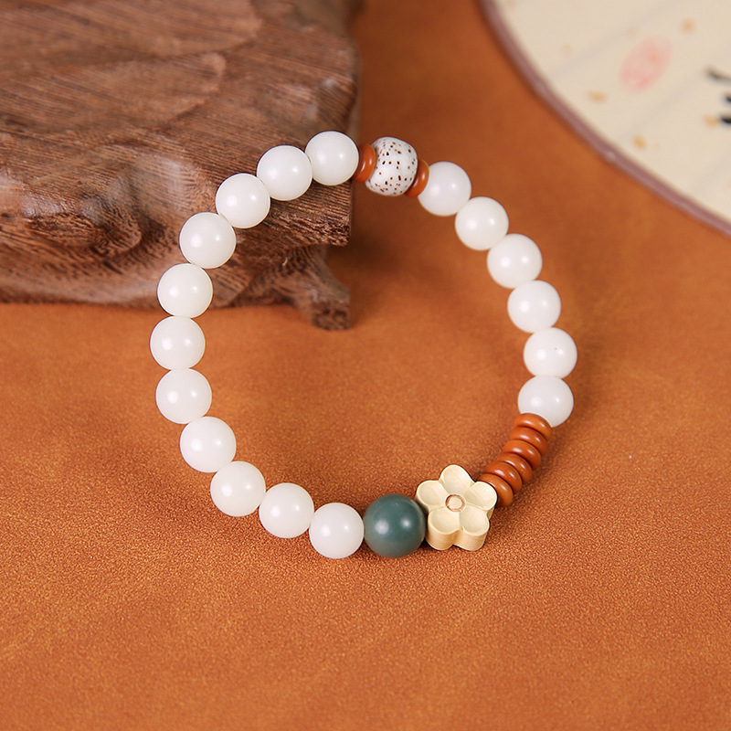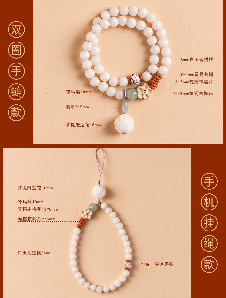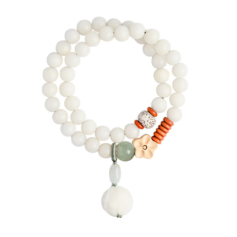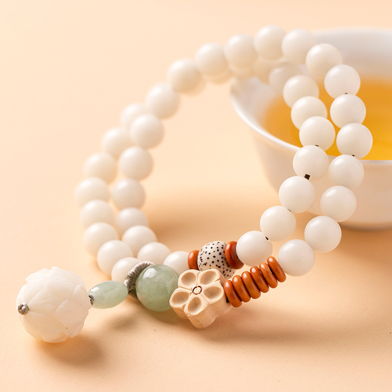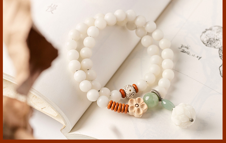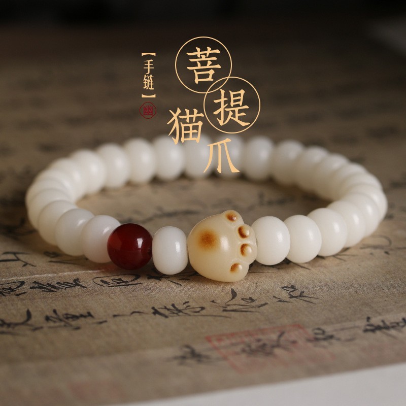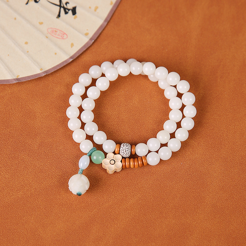 高密白玉菩提根手串女原创名族风菩提子双圈饰品可盘包浆文玩手链
