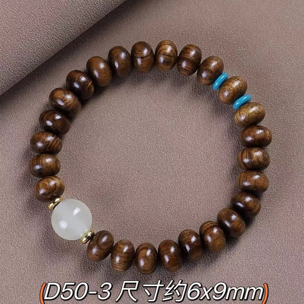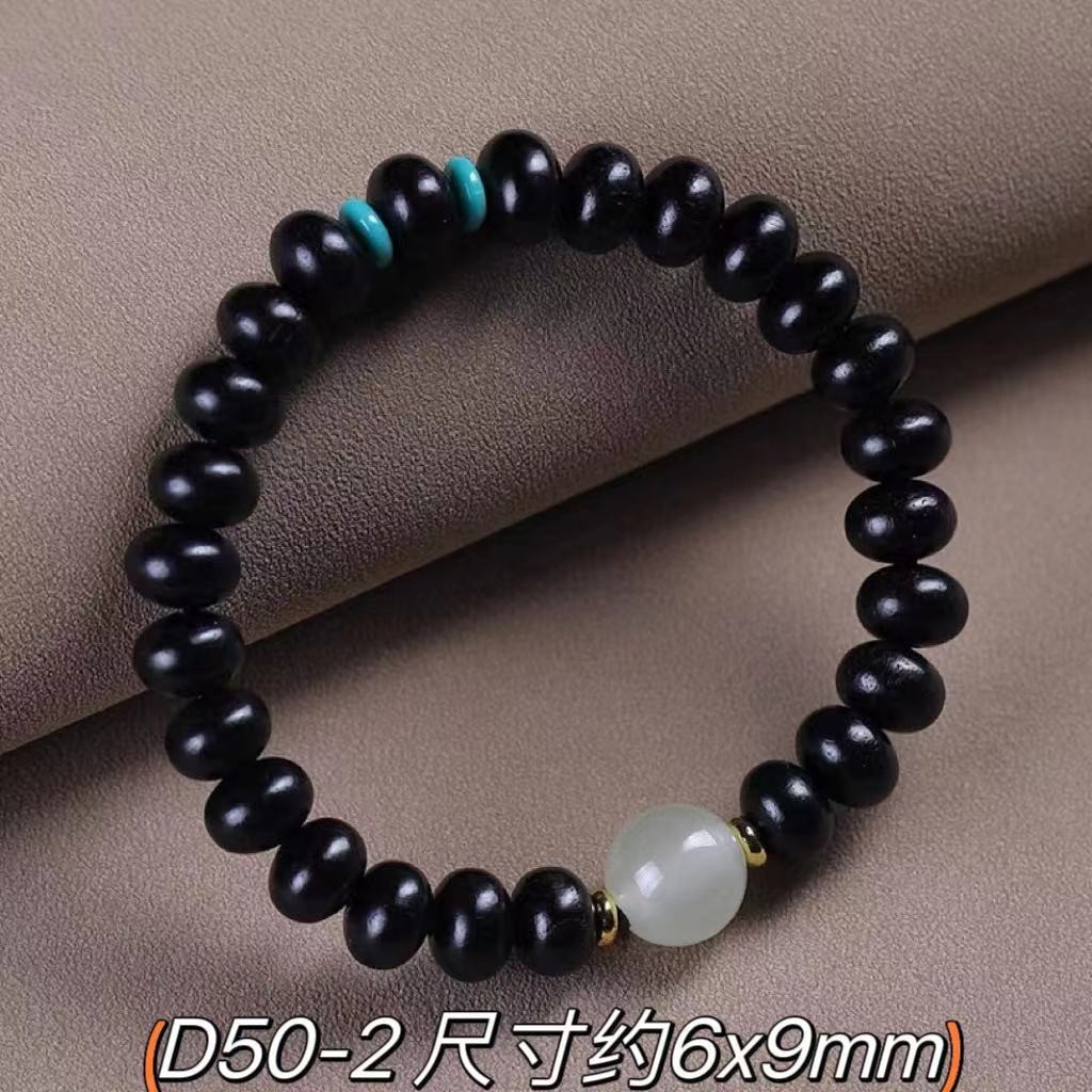 天然黑檀木绿檀木香竹节手串复古个性跑环夜光珠单圈手链男女手饰