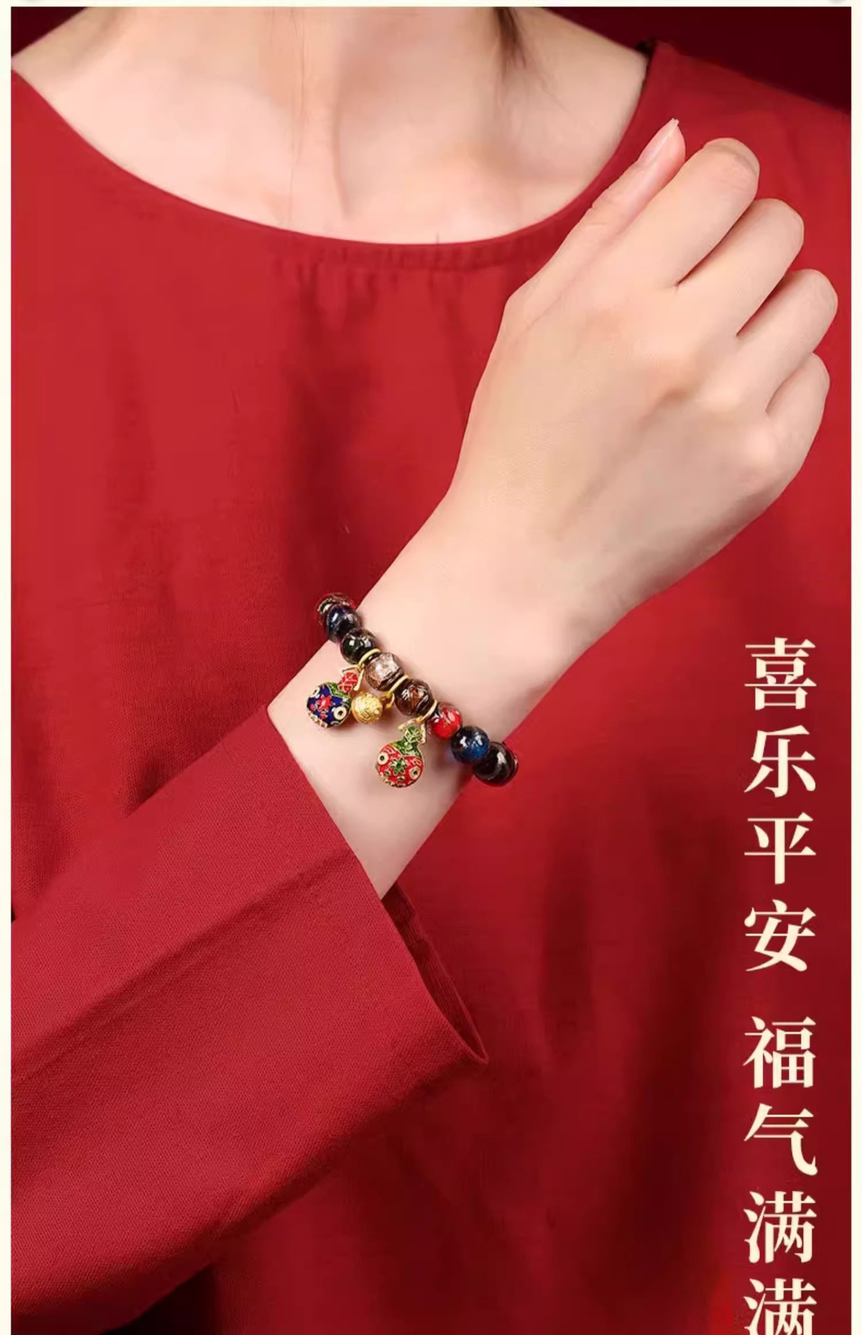 香灰琉璃手链五彩多宝吞金兽男女款手串手链金丝香灰琉璃手串