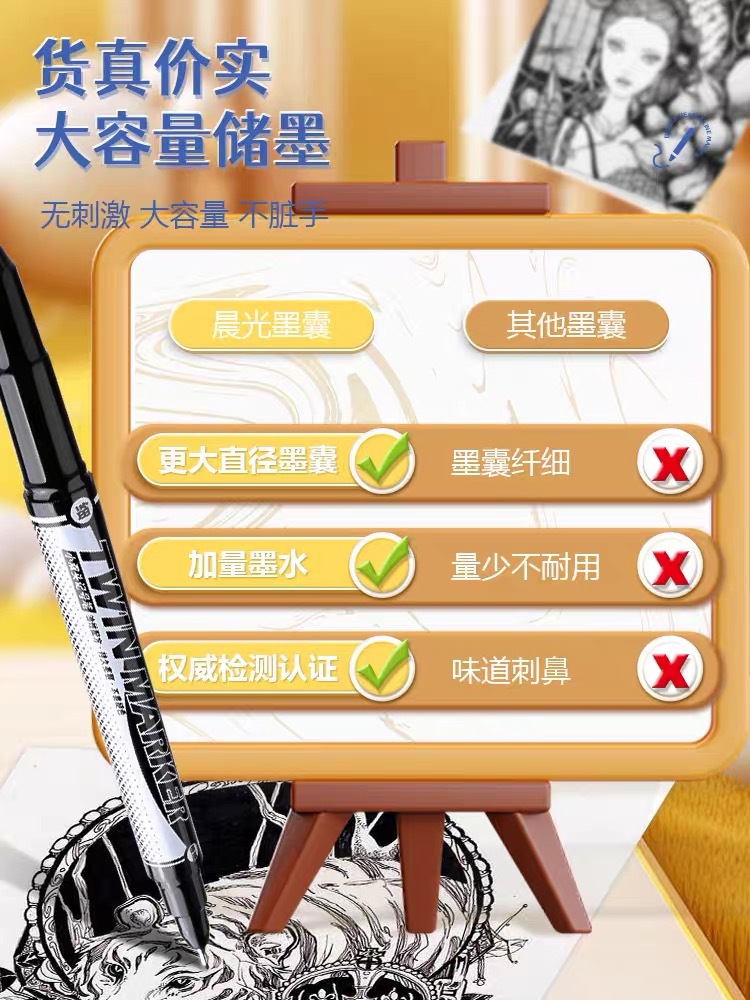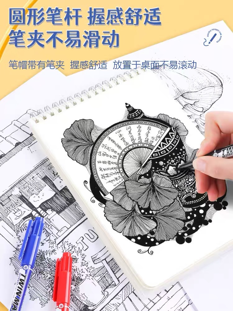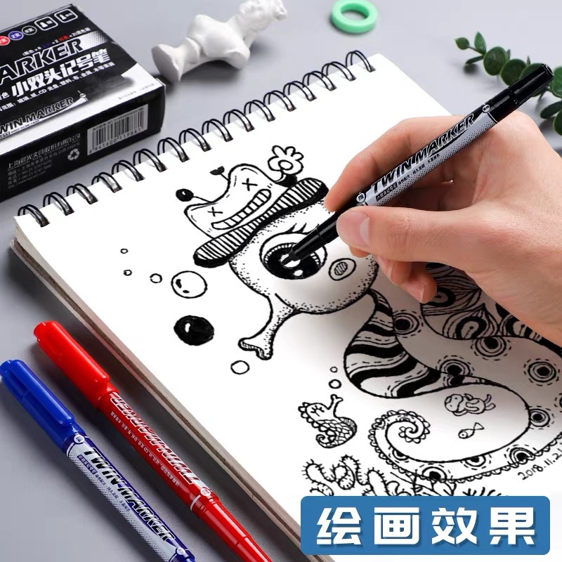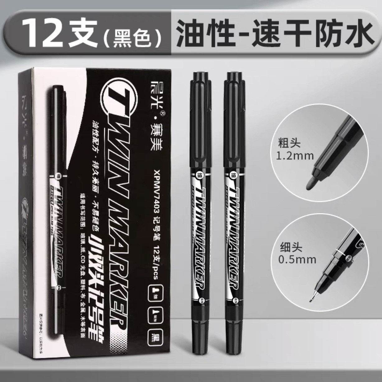 晨光小双头记号笔V7403油性美术勾线笔不掉色学生描边绘画钩线笔
